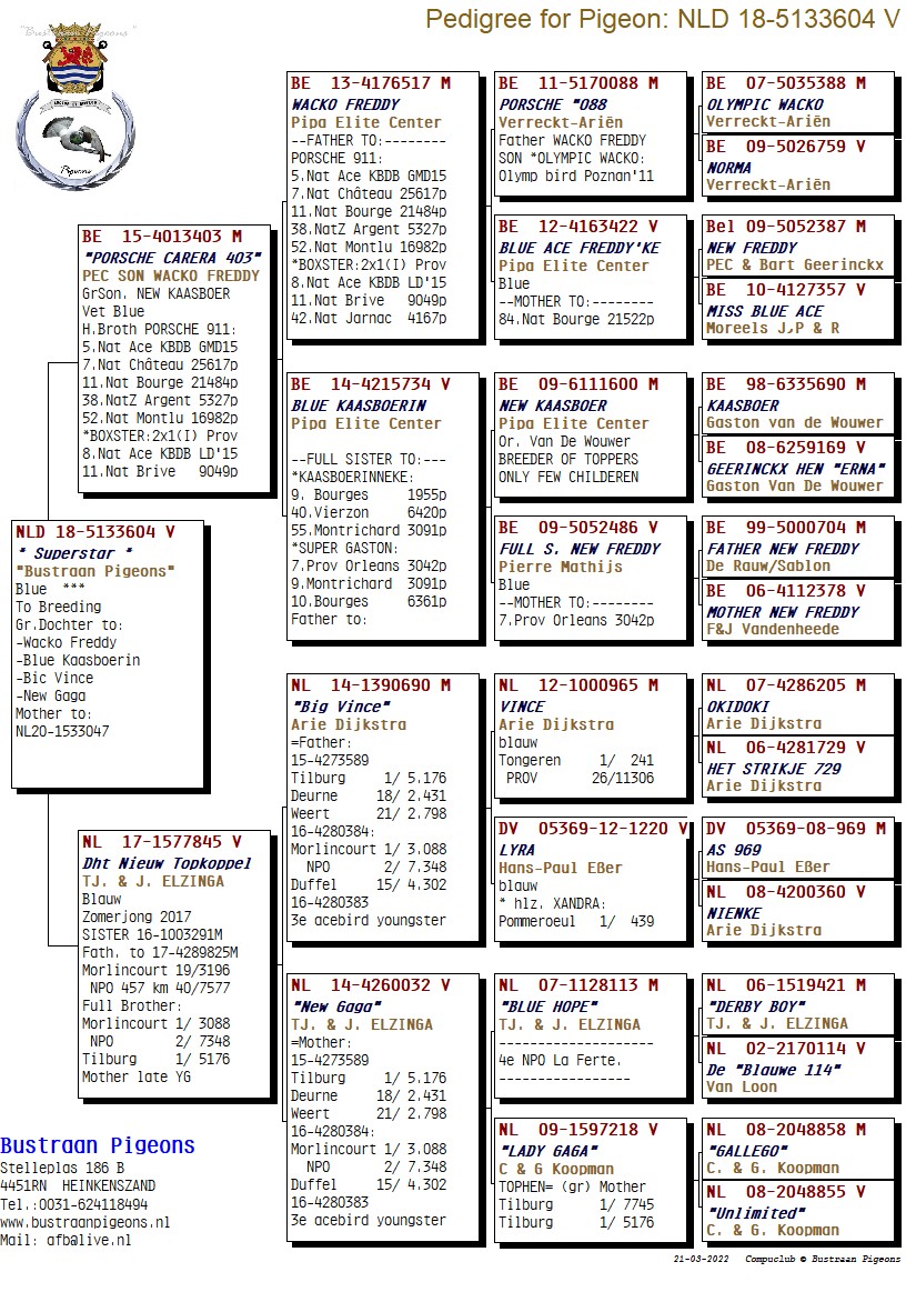作育者: BUSTRAAN PIGEONS 布斯特拉安信鸽