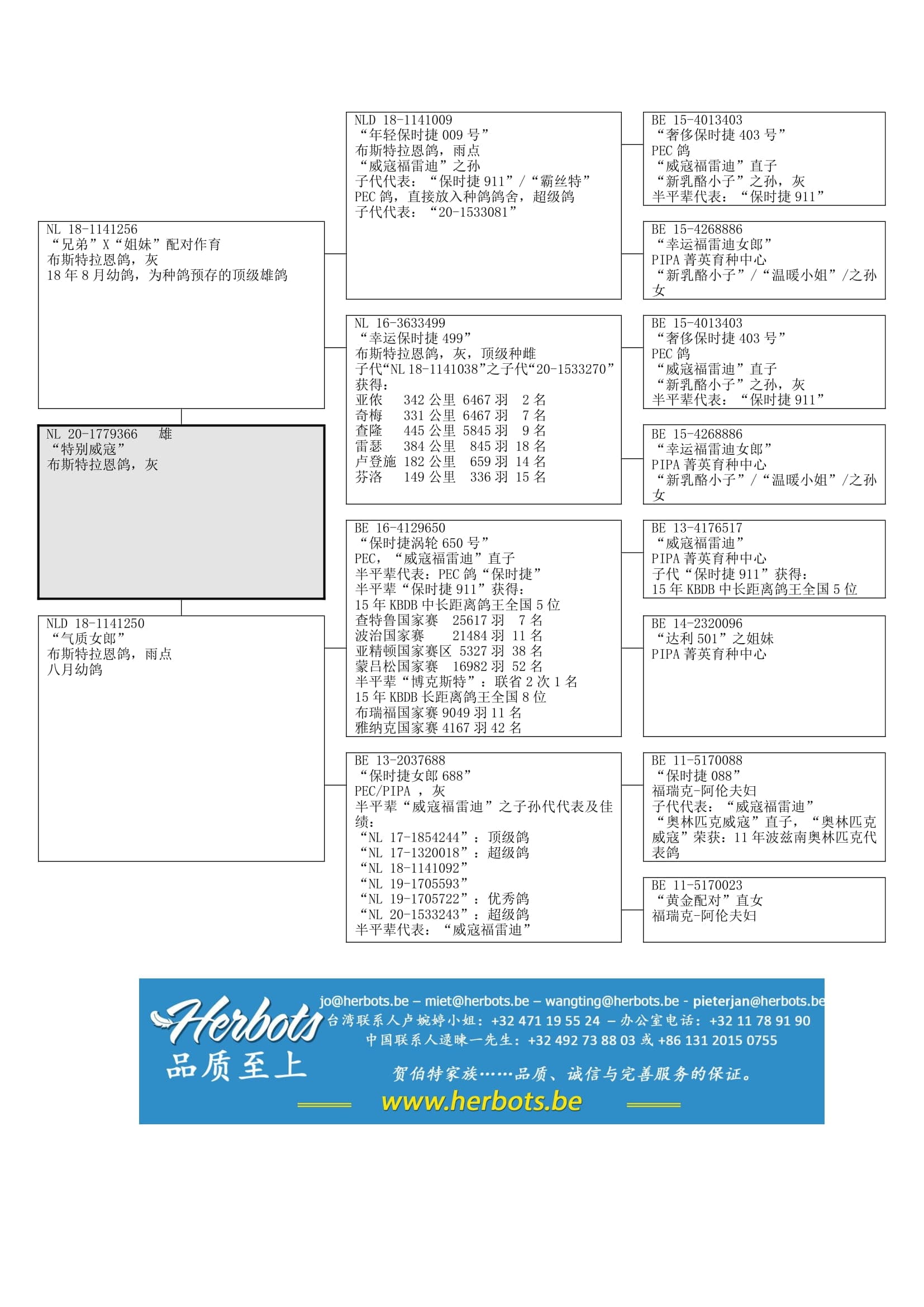 作育者: BUSTRAAN PIGEONS 布斯特拉安信鸽