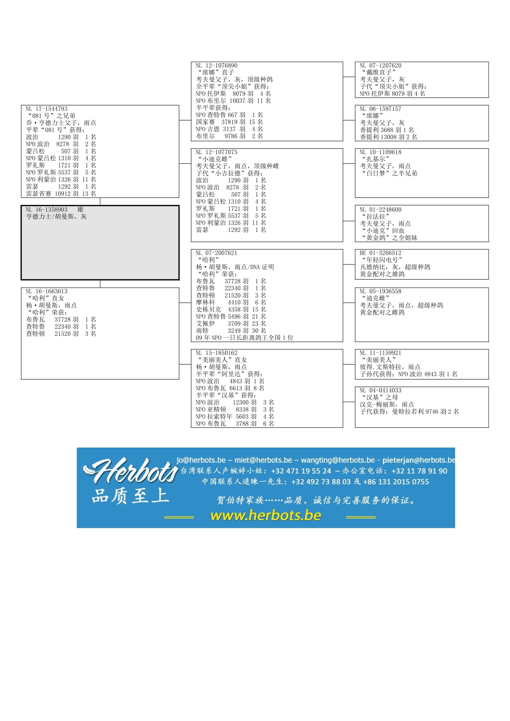 “哈利”荣获:09年NPO一日长距离鸽王全国1位--杨·胡曼斯基础种鸽