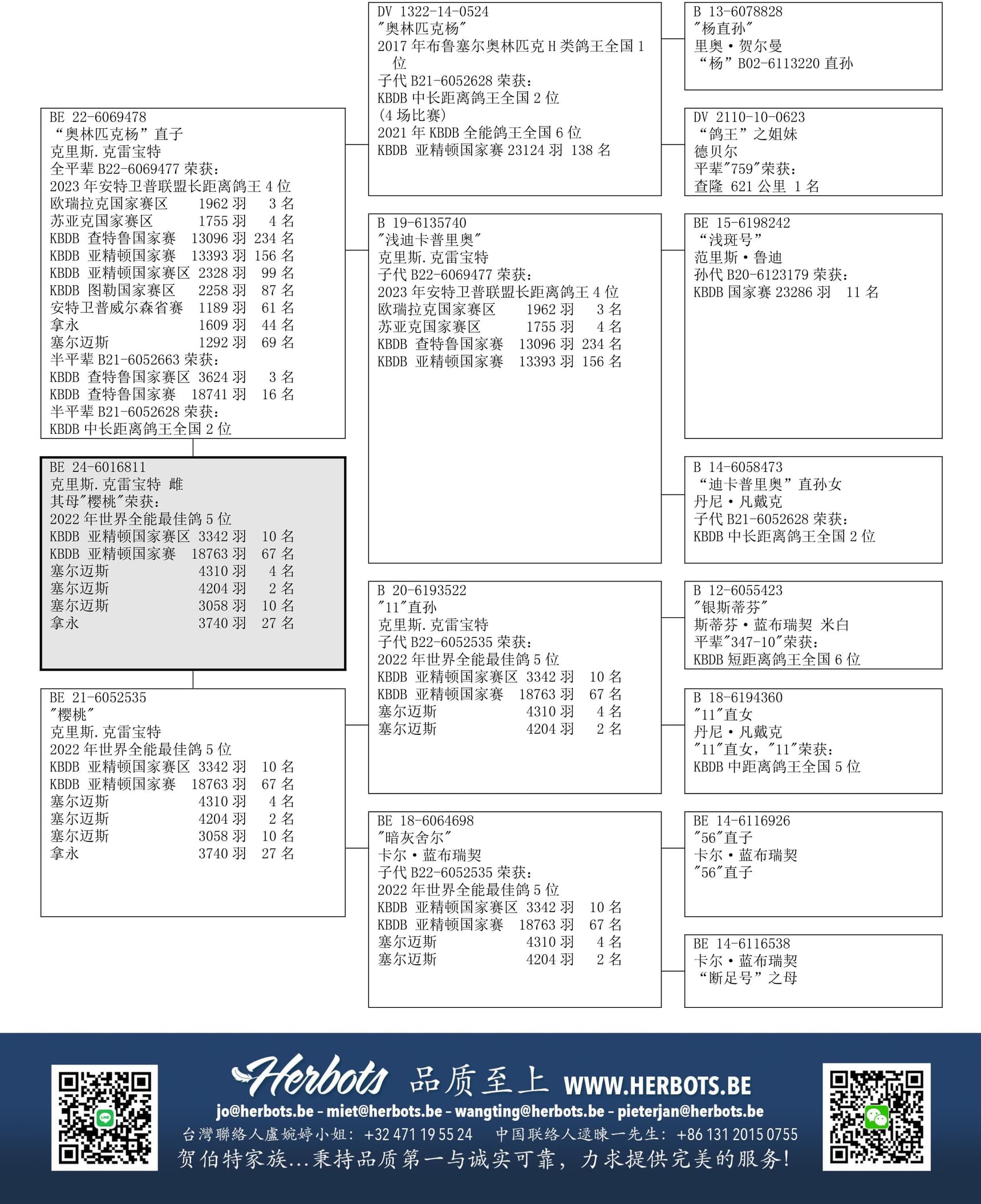 (子代荣获:安特卫普联盟鸽王4位 – 欧瑞拉克国家赛区3名 -