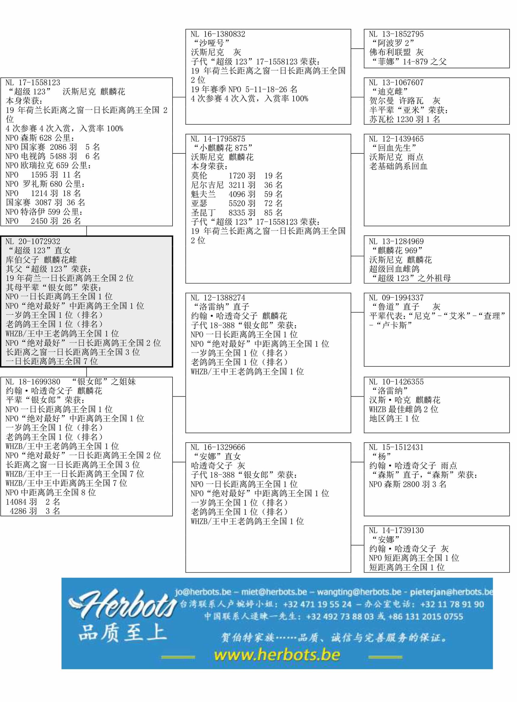 “超级 123”直女. “超级 123”荣获:19年荷兰一日长距离鸽王全国2位