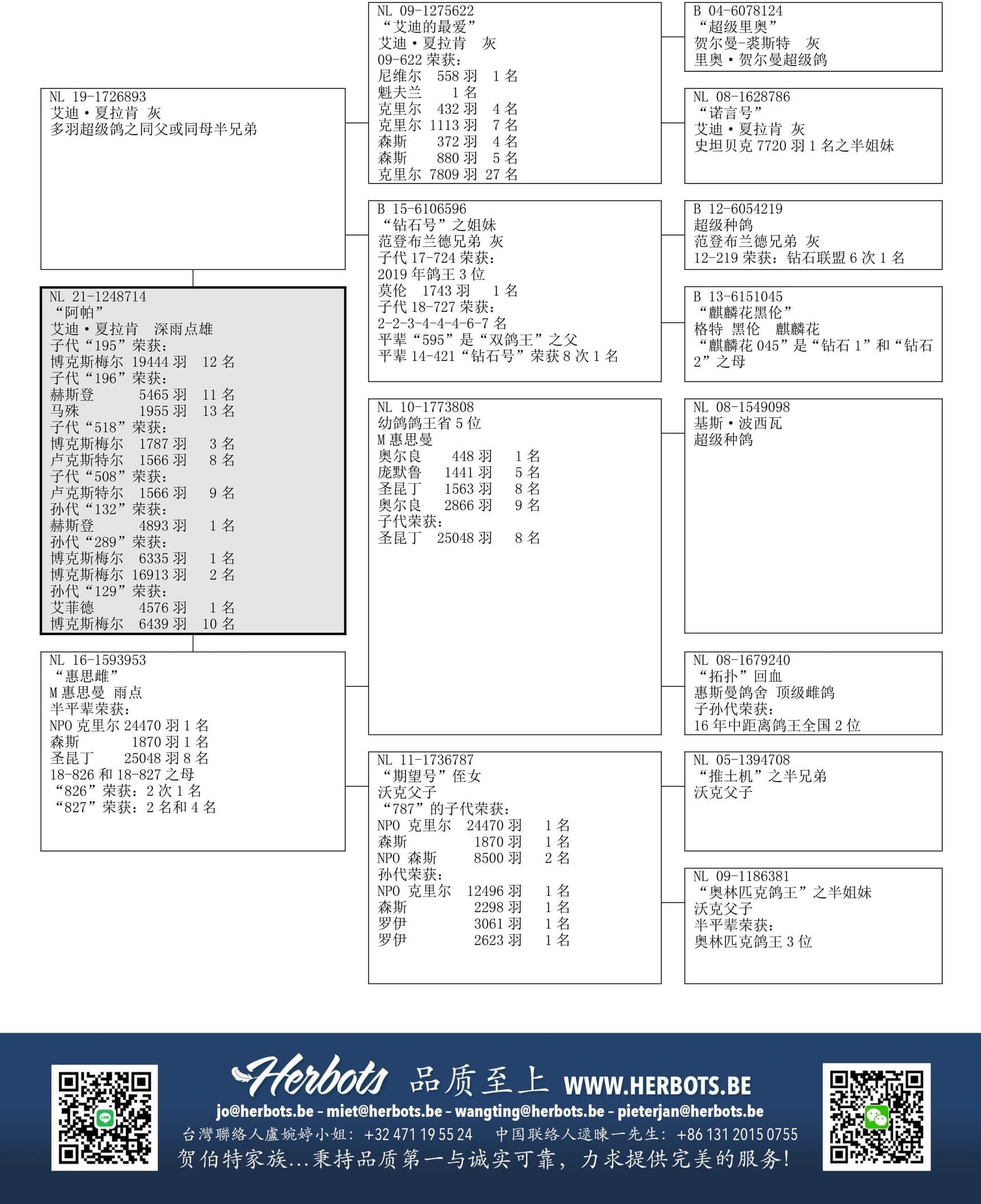 2019年鸽王1位 - 舍雷 289羽2名 - 舍雷 454羽3名