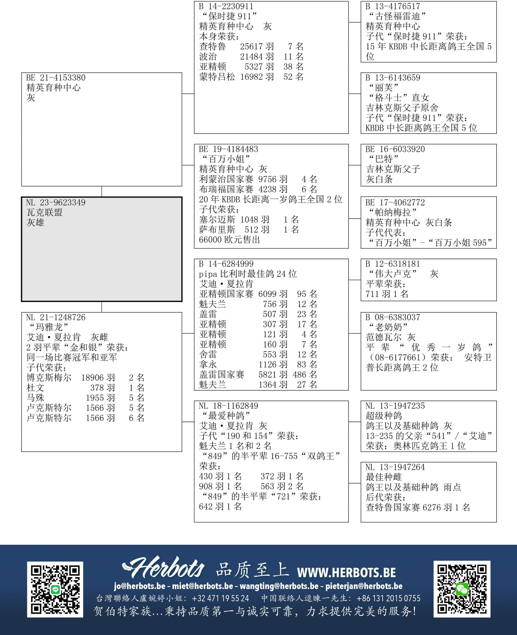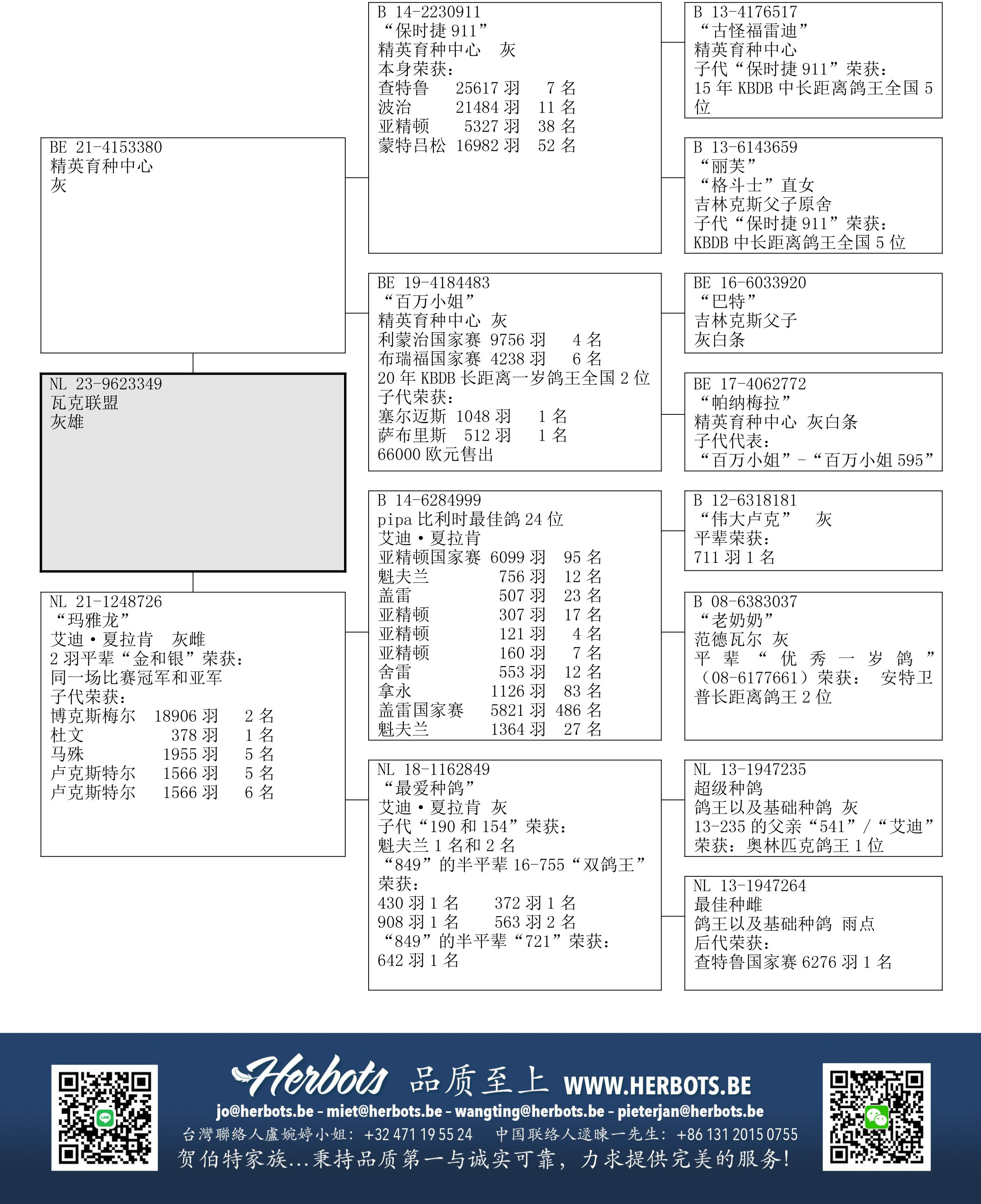 子孙代荣获: 国家赛3 次1名 –KBDB鸽王全国5-7-9-9位