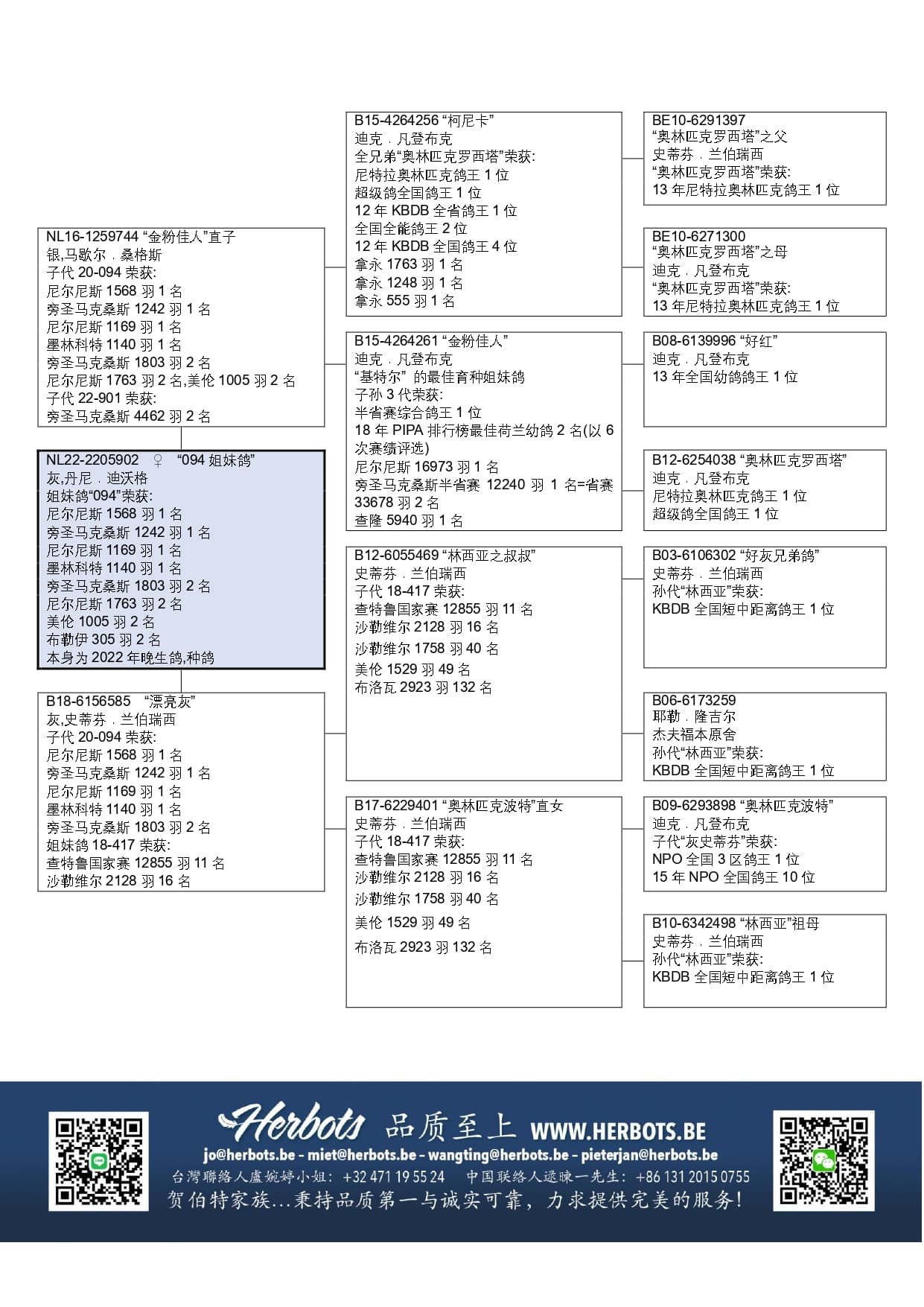 “金粉佳人”出自:“好红” 迪克.凡登布克,2013年全国幼鸽鸽王1位 x “奥林匹克罗西塔”,荣获:尼特拉奥林匹克1位 –全国速度鸽王1位– 2012年KBDB全省速度鸽王1位 –全国全能鸽王2位–12年KBDB全国速度鸽王4位