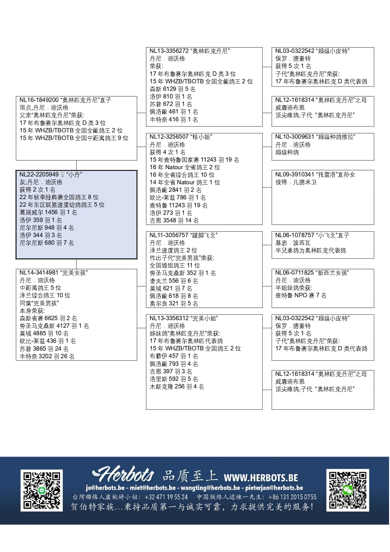 17年布鲁赛尔奥林匹克D类代表鸽3位