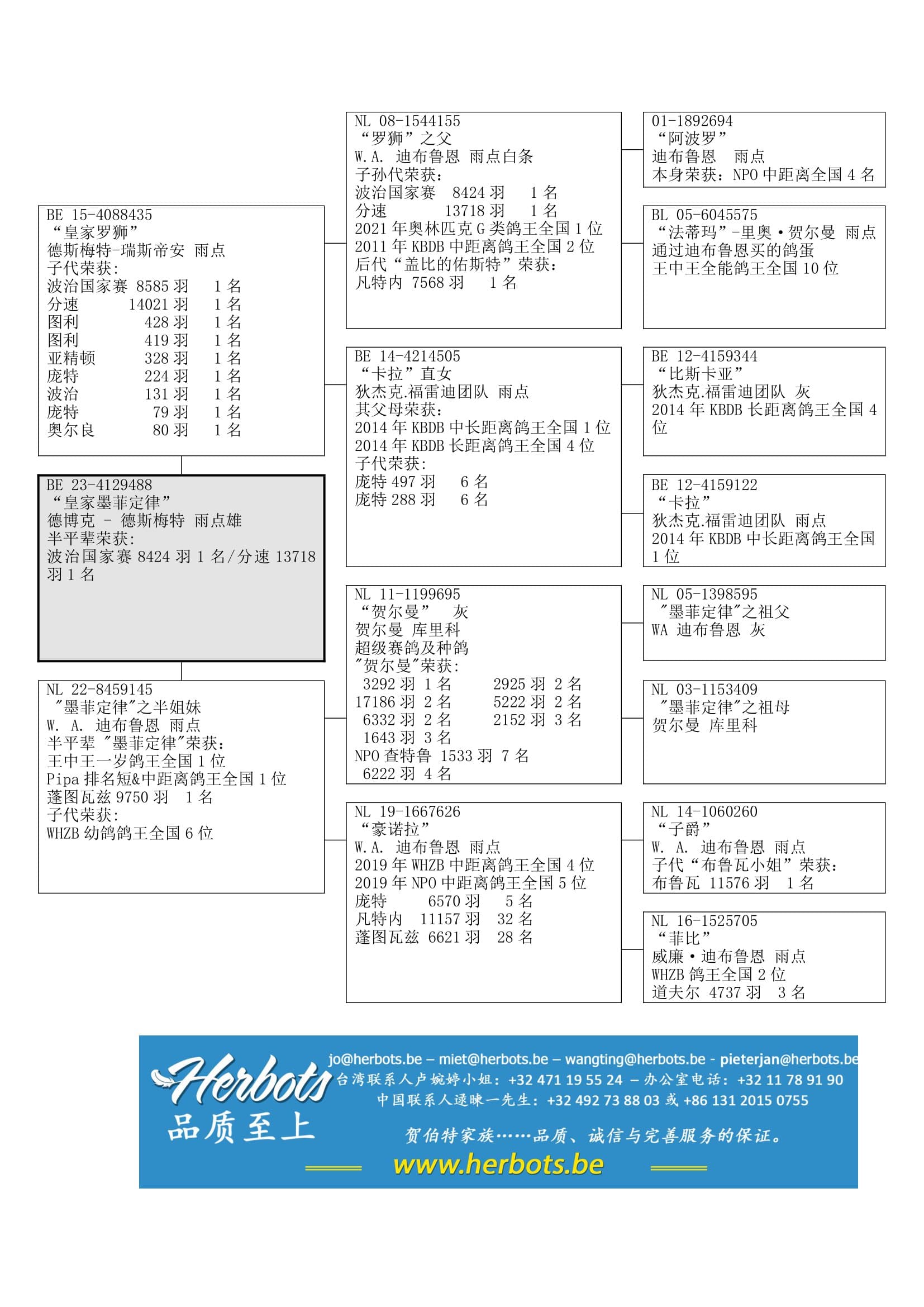 “墨菲定律”的子代荣获:鸽王全国6位, 12位和18位 (不同鸽获得)