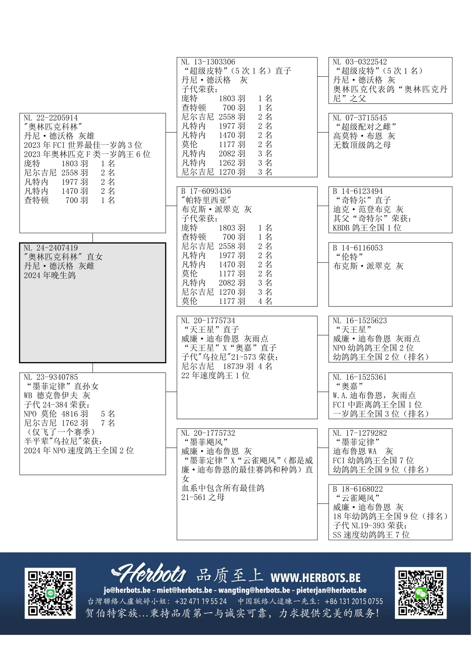 23年奥林匹克代表鸽以及23年FCI世界最佳鸽3位
