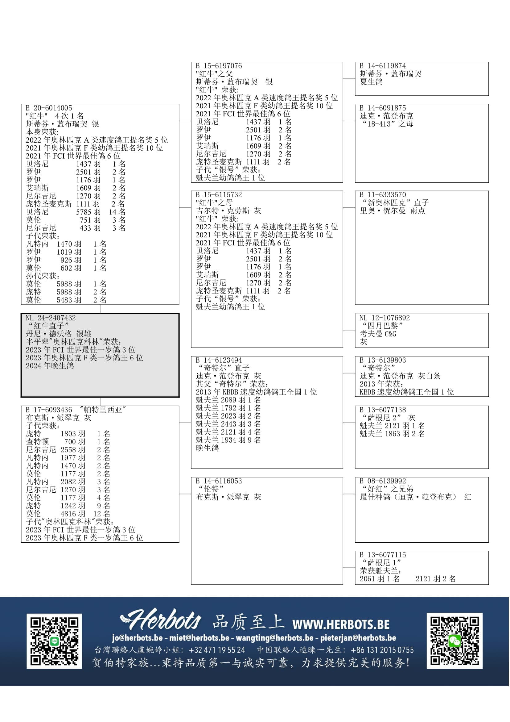 冠军种鸽“好红之兄弟”x “萨根尼 I” (2,061羽1名 – 2,121羽 2名等等)作出