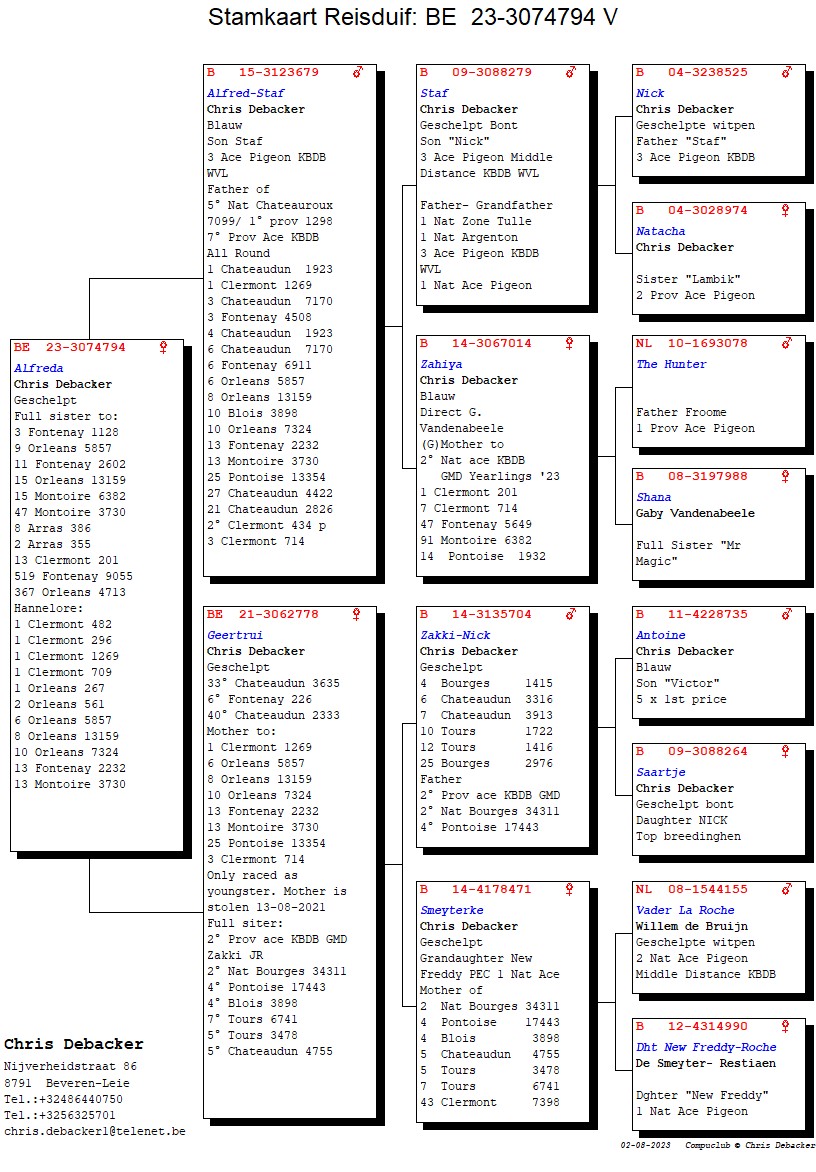 波治国家赛 34,311羽2名 – 蓬图瓦兹17,443羽4名 – 布鲁瓦 3,898羽4名 – 图尔 6,741羽7名- 图尔 3,478羽5名 – 查特顿 4,755羽5名 - 查特顿 2,843羽14名 – 查特顿 1,857羽14名