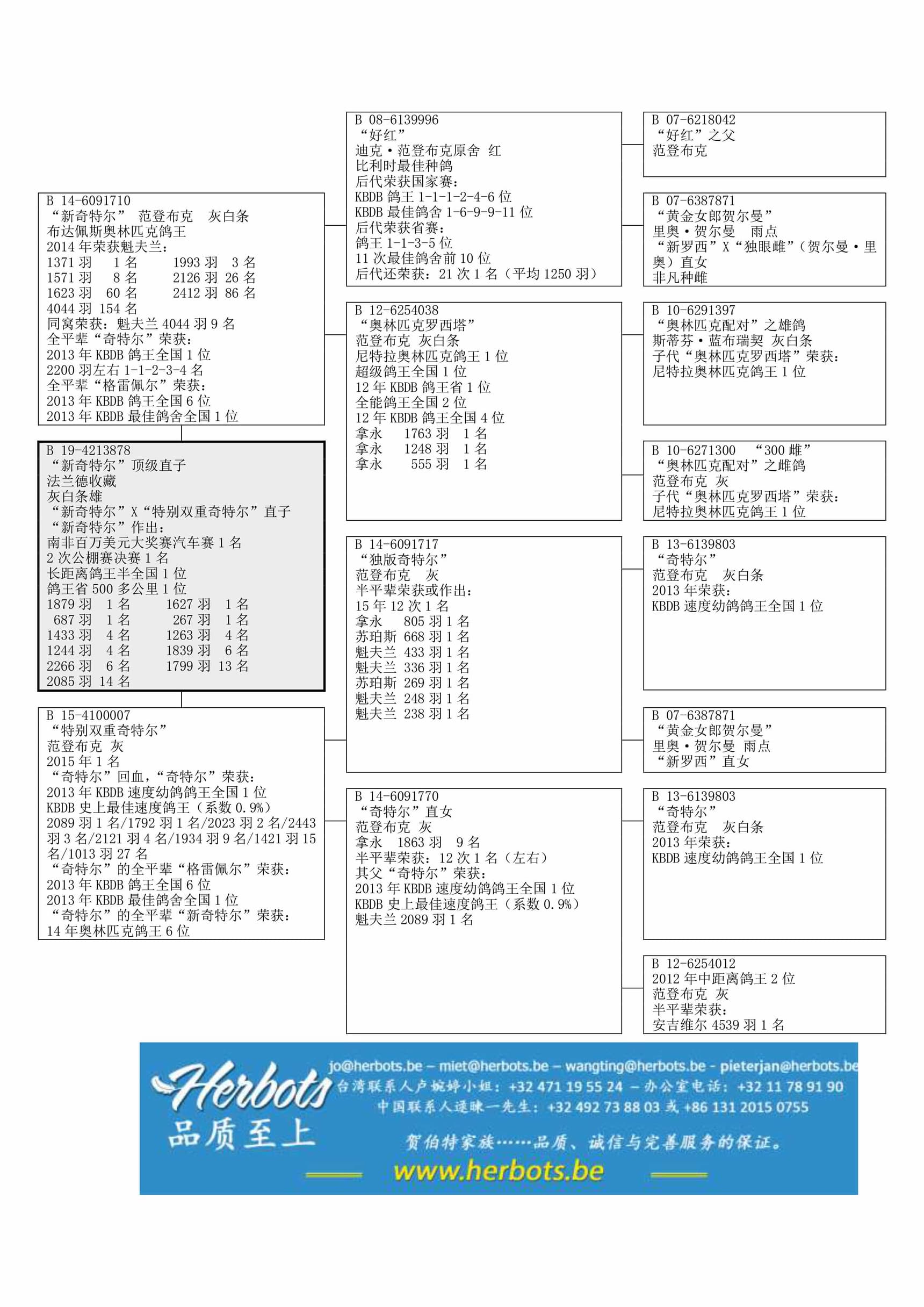 “新奇特尔” (“新奇特尔”荣获:奥林匹克鸽王6位) x “特别双重奇特尔” (“奇特尔”双重直孙女) 直子