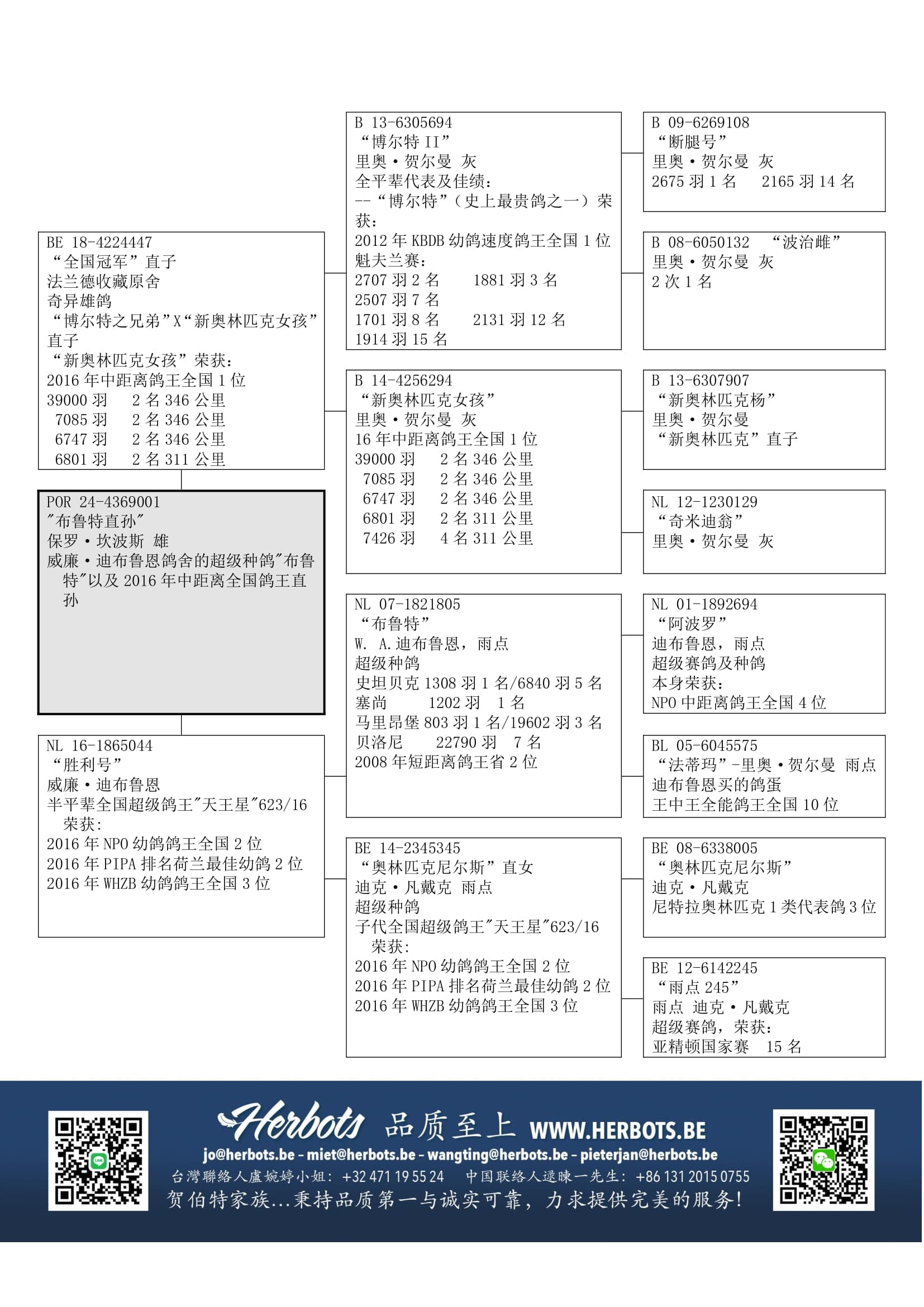“布鲁特” (速度鸽王省2位 – 6,840羽5名 – 19,602羽3名 – 22,790羽7名 – 俱乐部3 次1名) x “奥林匹克尼尔斯直女” (奥林匹克代表鸽“奥林匹克尼尔斯”直女 – “天王星”之母 - 迪克·凡戴克原舍)作出