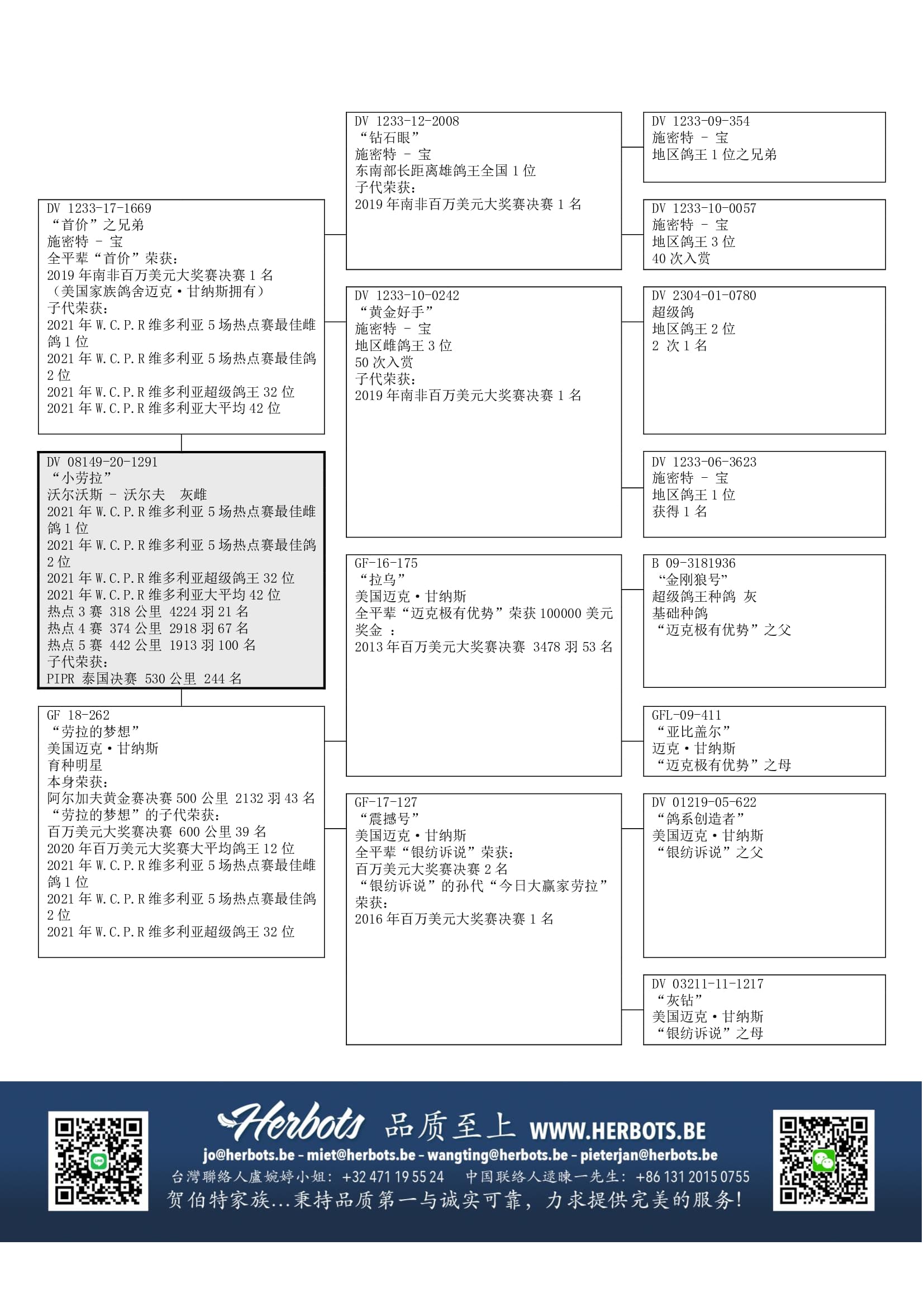 21年W.C.P.R维多利亚5场热点赛最佳鸽2位