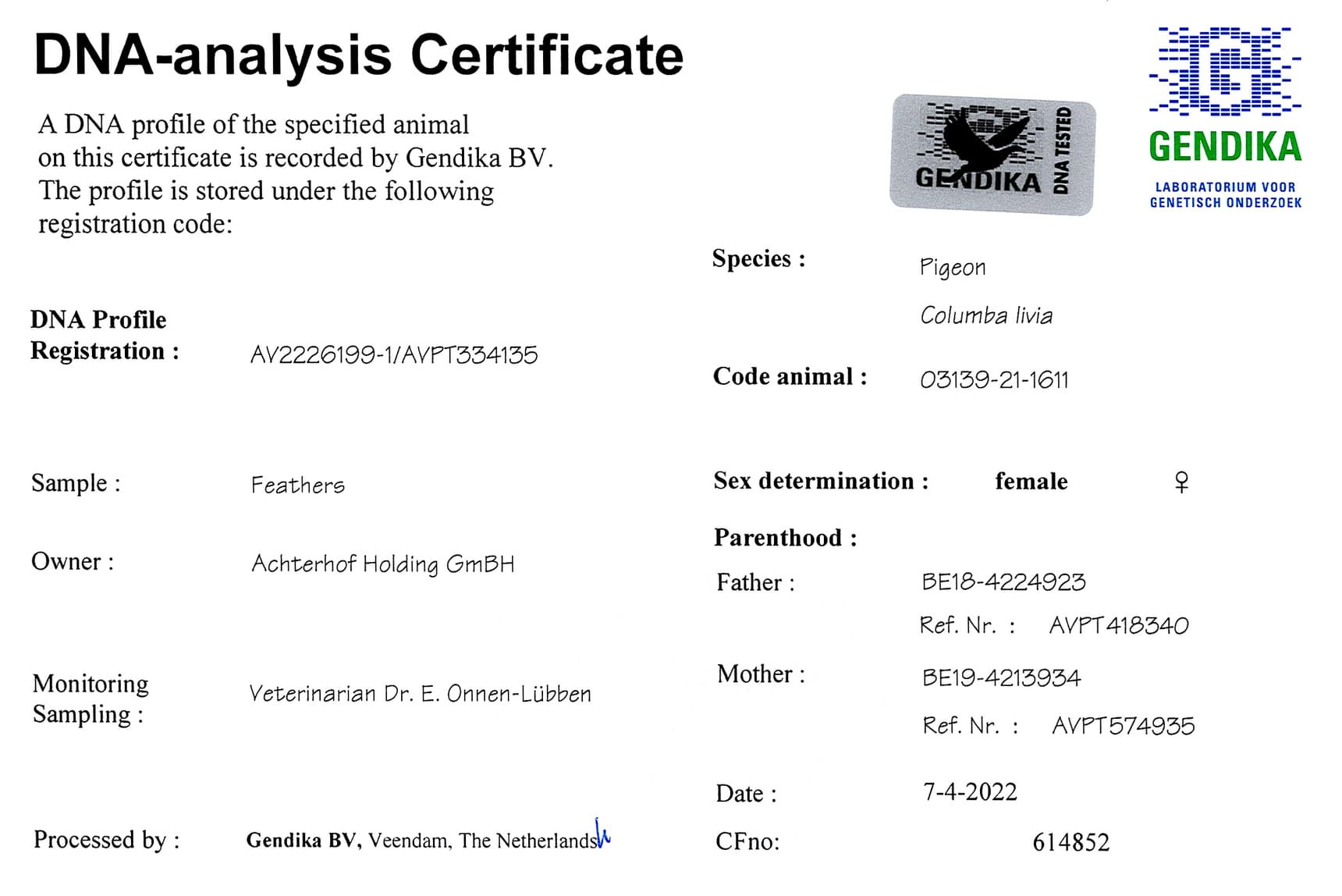 世界铭鸽 “奇特尔” x “超级速度鸽直女”直子