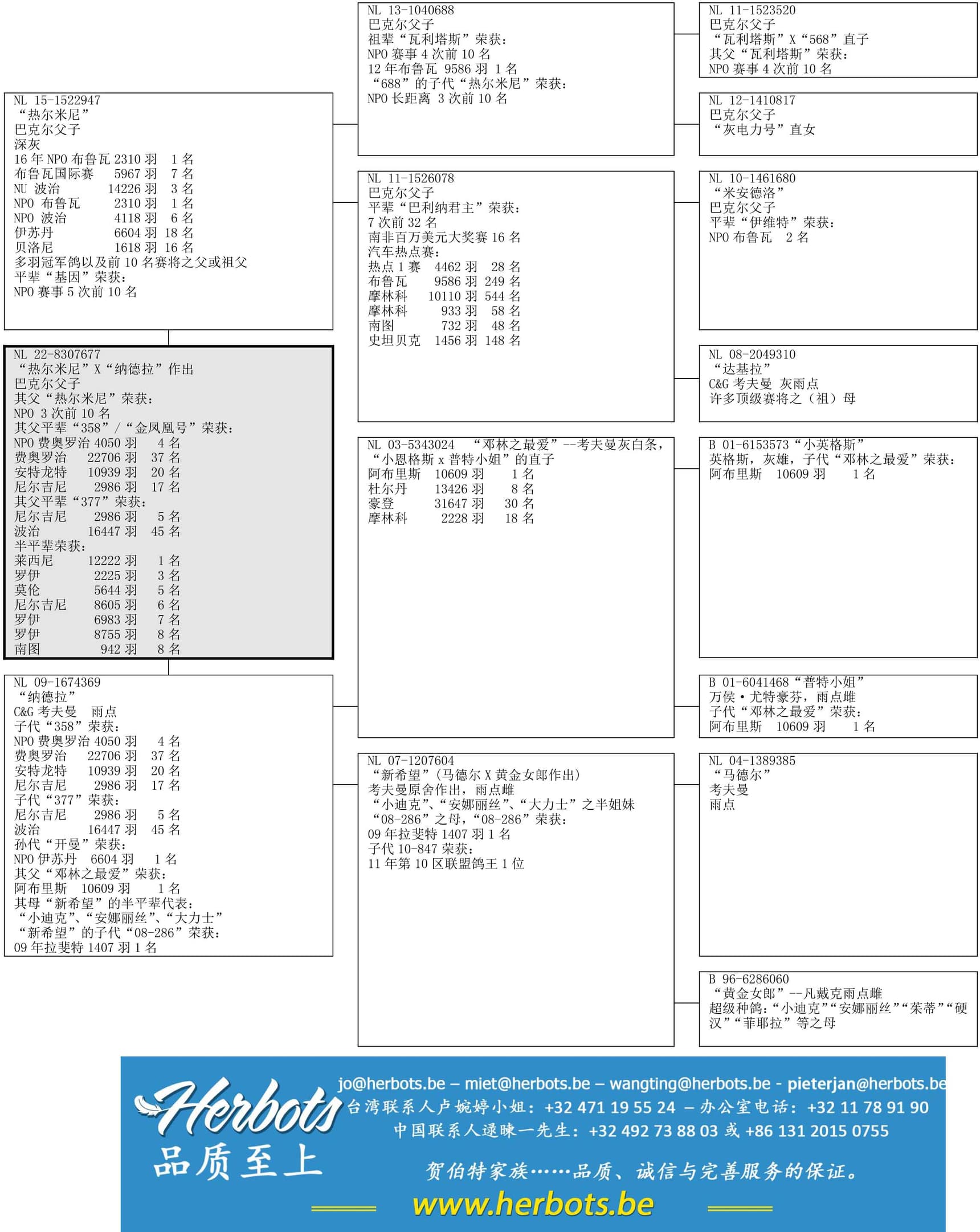 “邓林之最爱” (荣获 阿布里斯 10,609羽1名;子代荣获:NPO长距离鸽王全国2位) x “新希望” (“小迪克”之半姐妹) 直女
