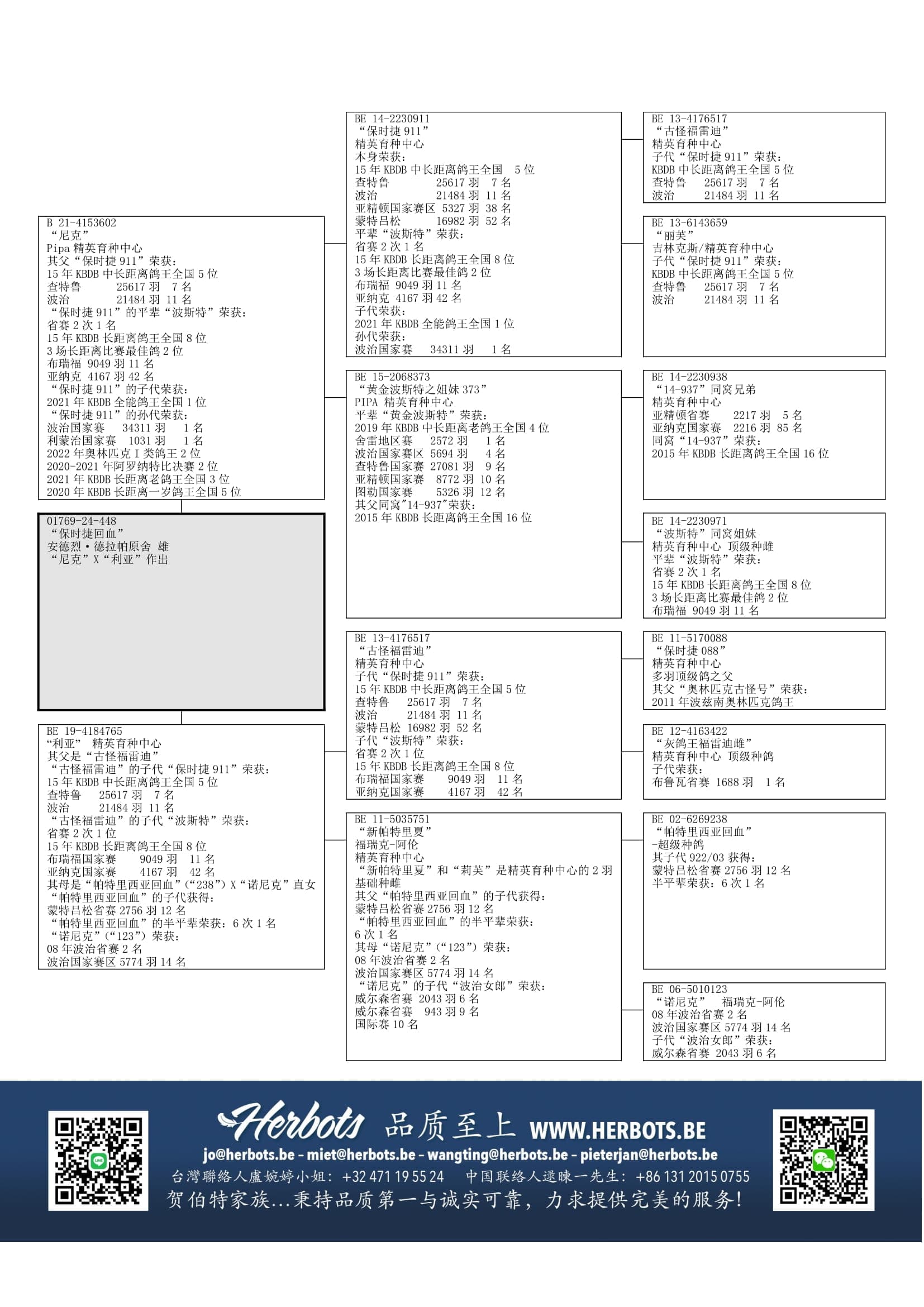 和“波斯特” (15年KBDB长距离鸽王全国8位 - 省赛2 次1名 – 布瑞福国家赛 9,049羽11名 – 亚纳克国家赛4,167羽42名)
