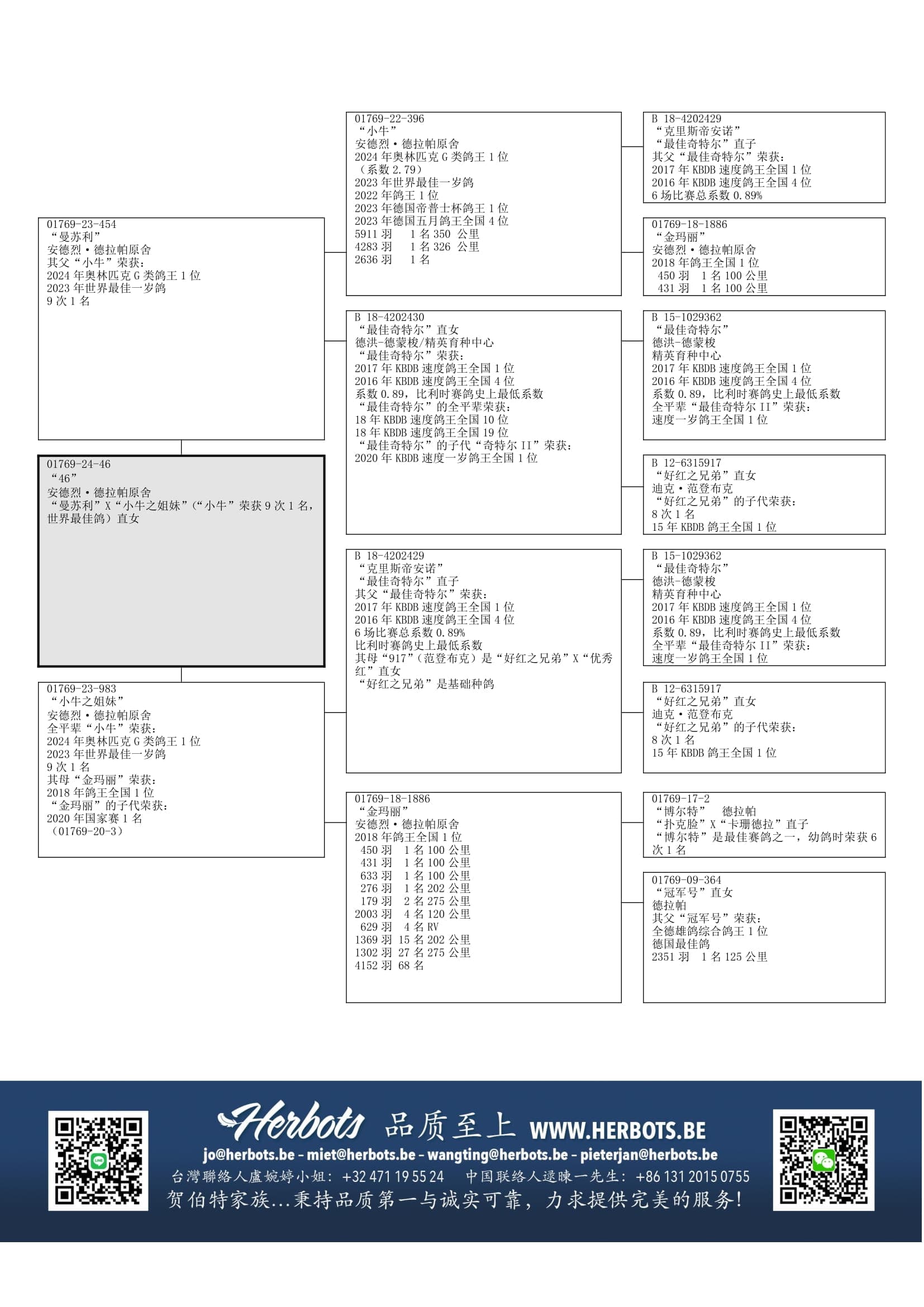 最佳奇特尔”(KBDB短距离鸽王全国1位和4位)直女