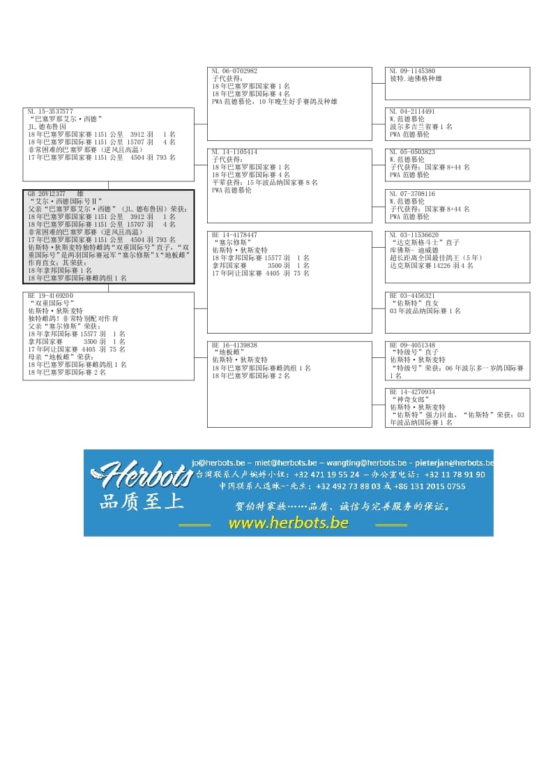 国家赛赢家“巴塞罗那艾尔·西德”直子,其荣获:18年巴塞罗那国家赛3912羽1名国际赛15707羽4名国际赛赢家“塞尔修斯”之孙,其荣获:18年拿邦国际赛15577羽1名国际赛赢家“地板雌”之孙,其荣获:18年巴塞罗那国际赛雌鸽组4787羽1名/国际赛15707羽2名