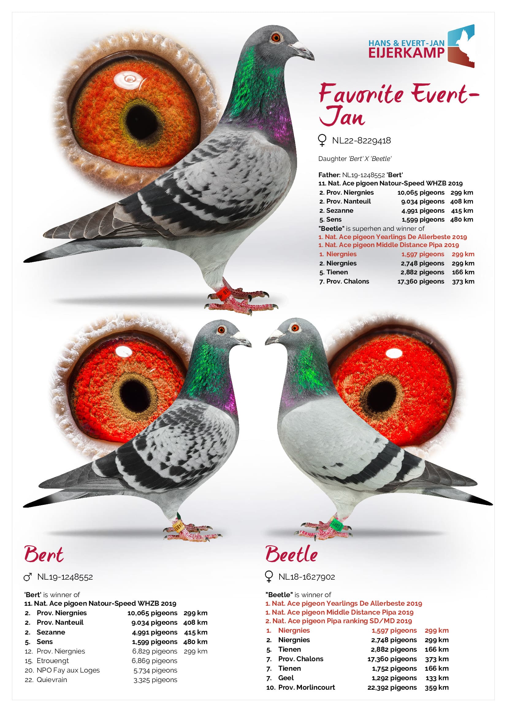 其母“甲壳虫”是超级雌鸽,荣获: