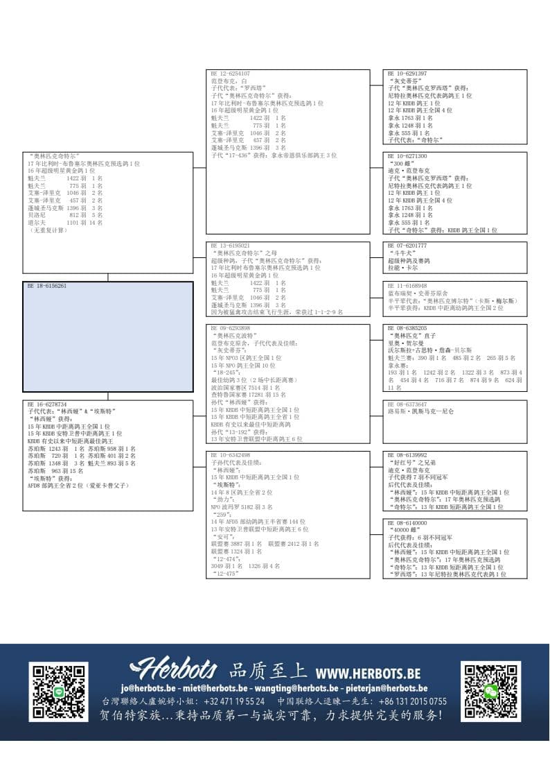 全平辈奥林匹克代表鸽“奥林匹克罗西塔” 之子代代表:“奇特尔”/“格雷佩尔”