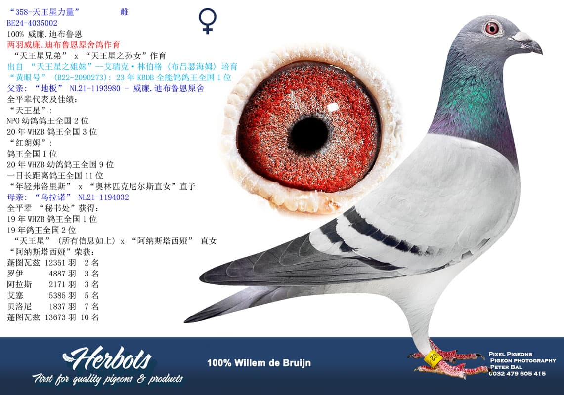 作育者: 100% WILLEM DE BRUIJN 纯威廉迪布恩血统