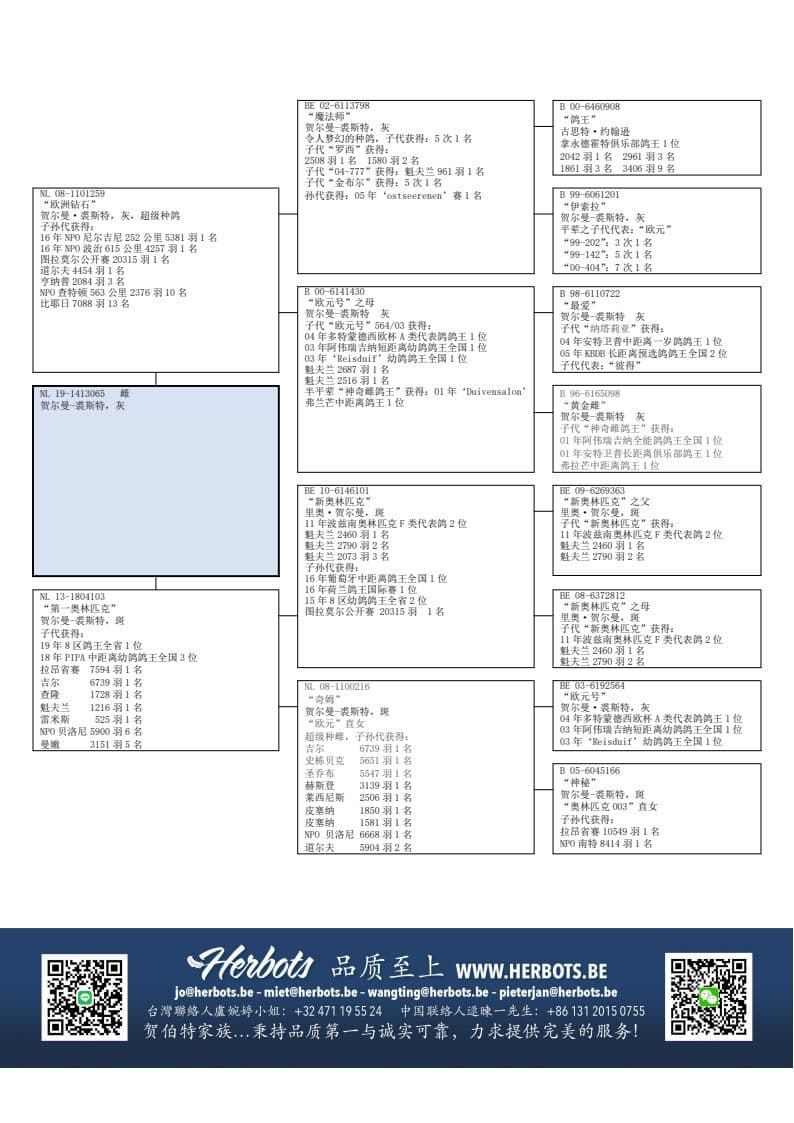 爱亚卡普·汉斯&爱沃特 杨超级种鸽,子孙代获得: