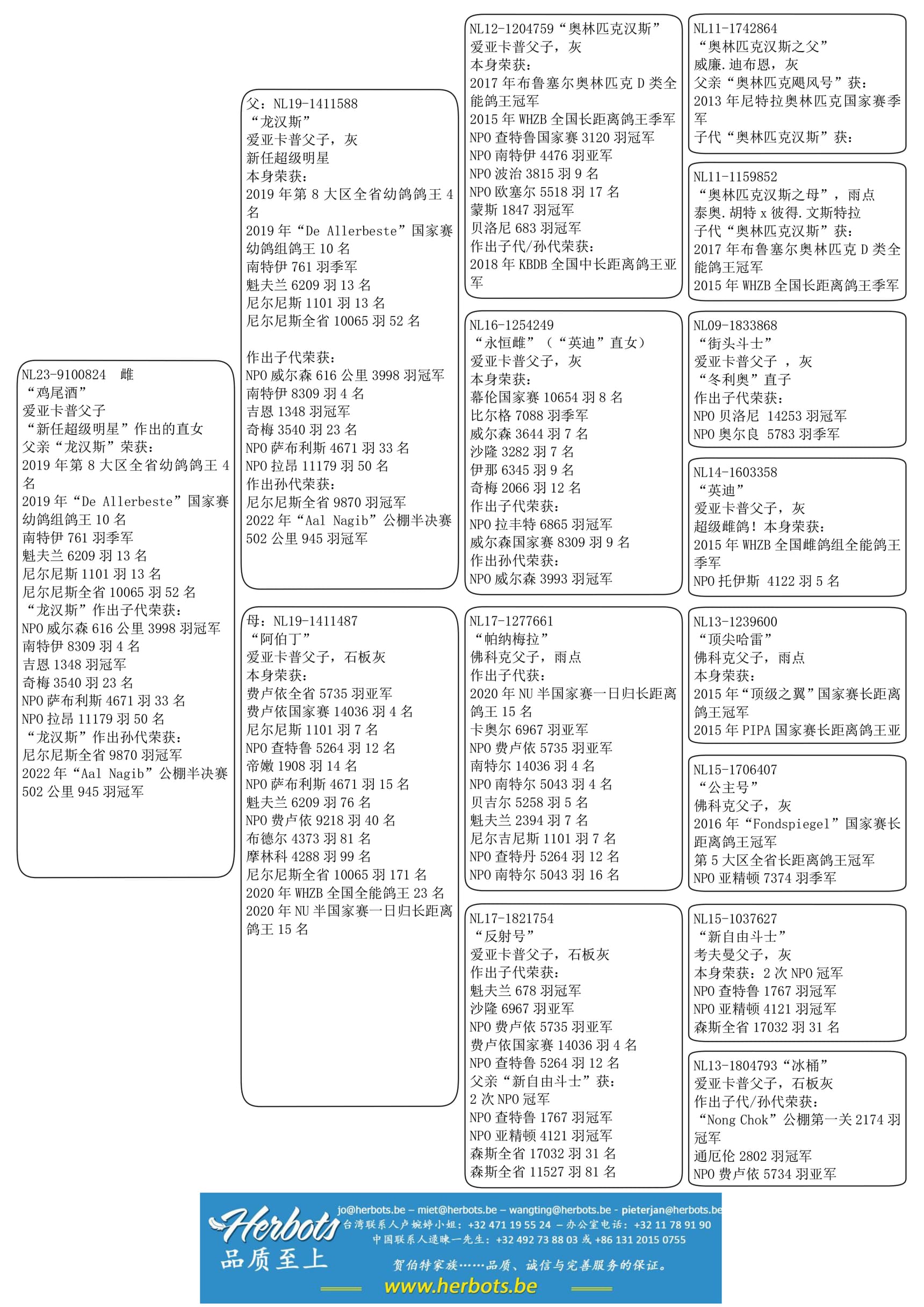 2019年“De Allerbeste”国家赛幼鸽组鸽王10名