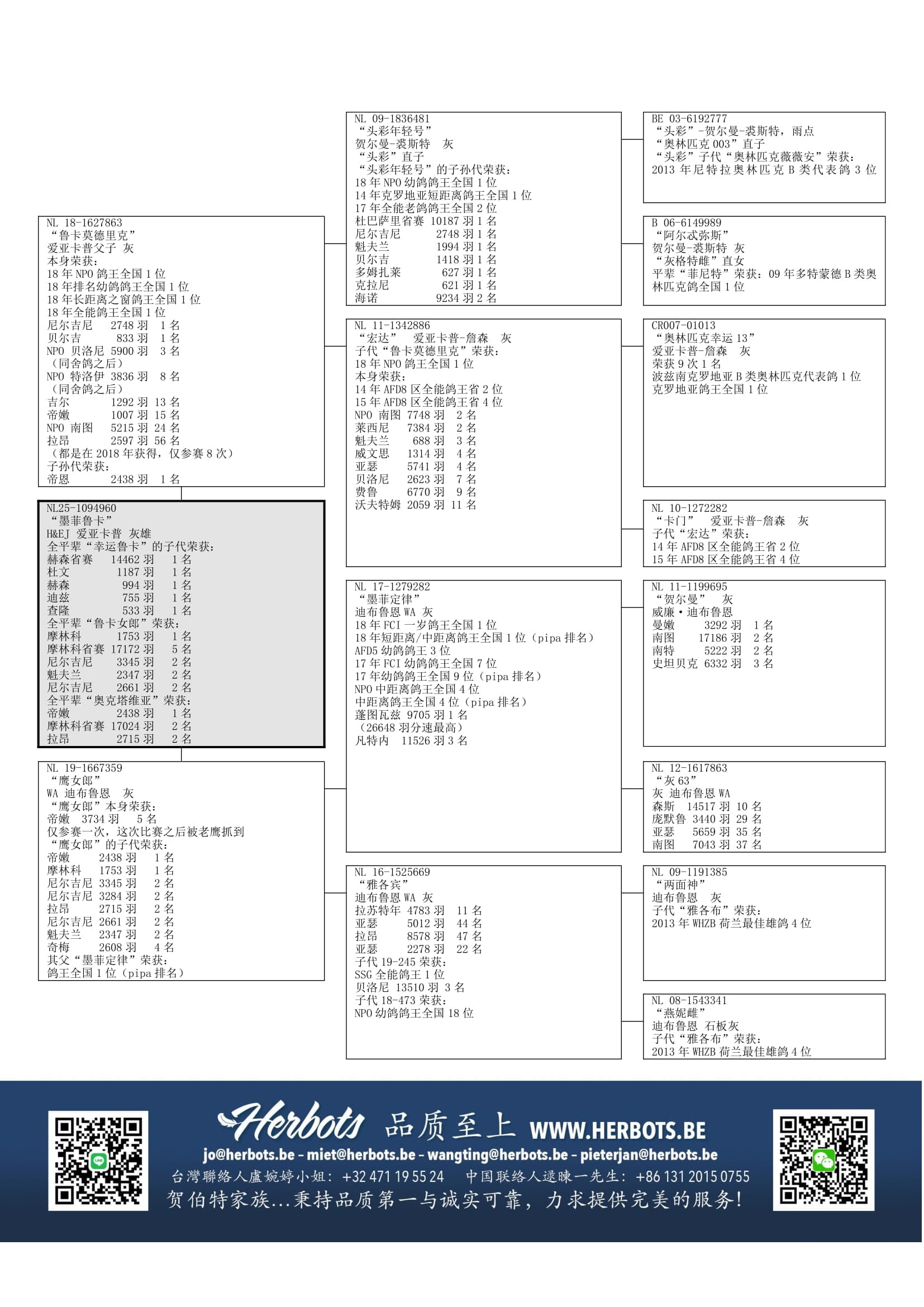 同母半平辈荣获: SS全能鸽王1位 – NPO幼鸽鸽王18位