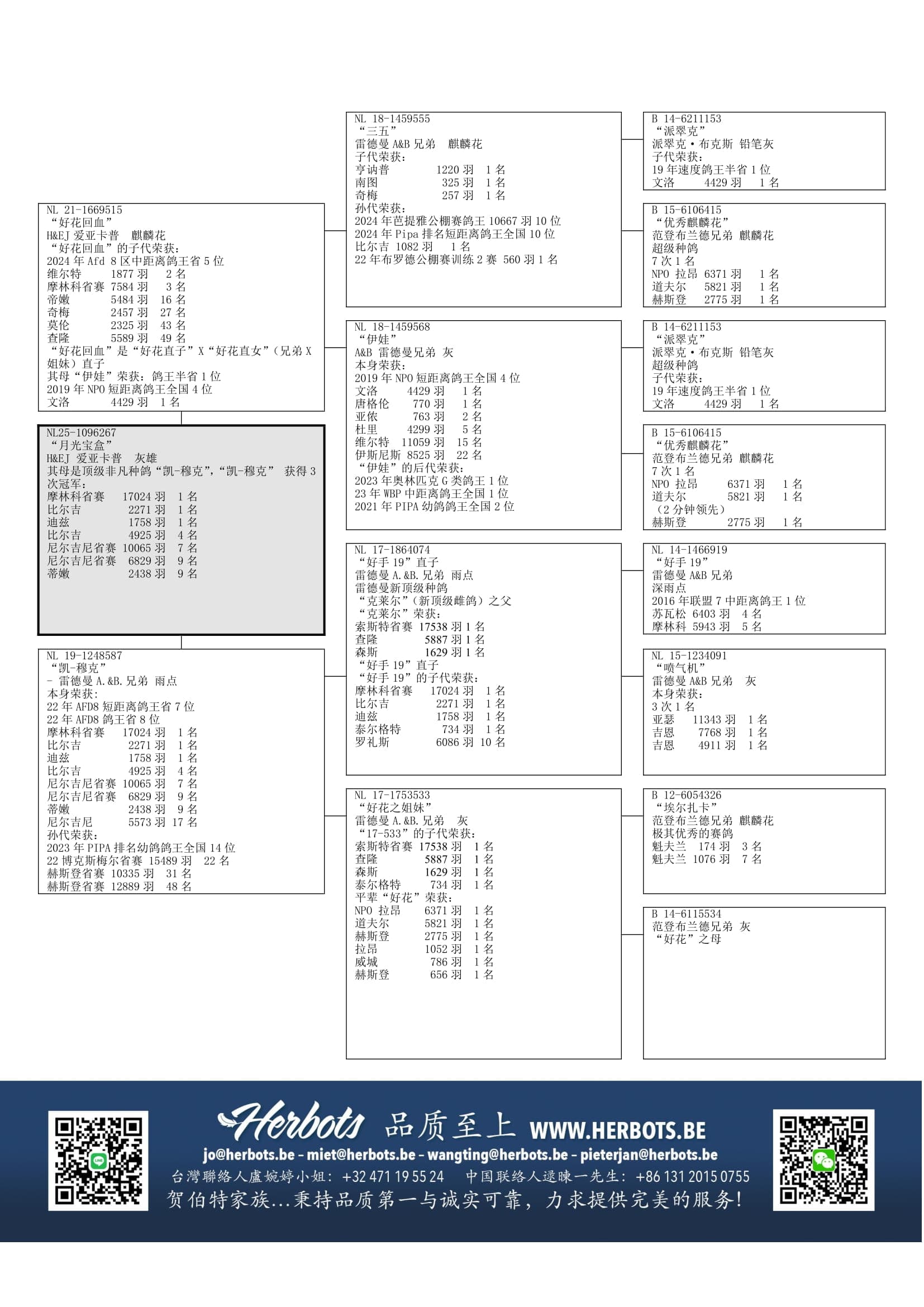 “三五” (“好花”直子) x “伊娃” (2019年NPO短距离鸽王全国4位 – 后代荣获: 2023年奥林匹克G类鸽王1位 – 23年中距离世界最佳鸽鸽王全国1位 – Pipa排名幼鸽鸽王全国2位)作出