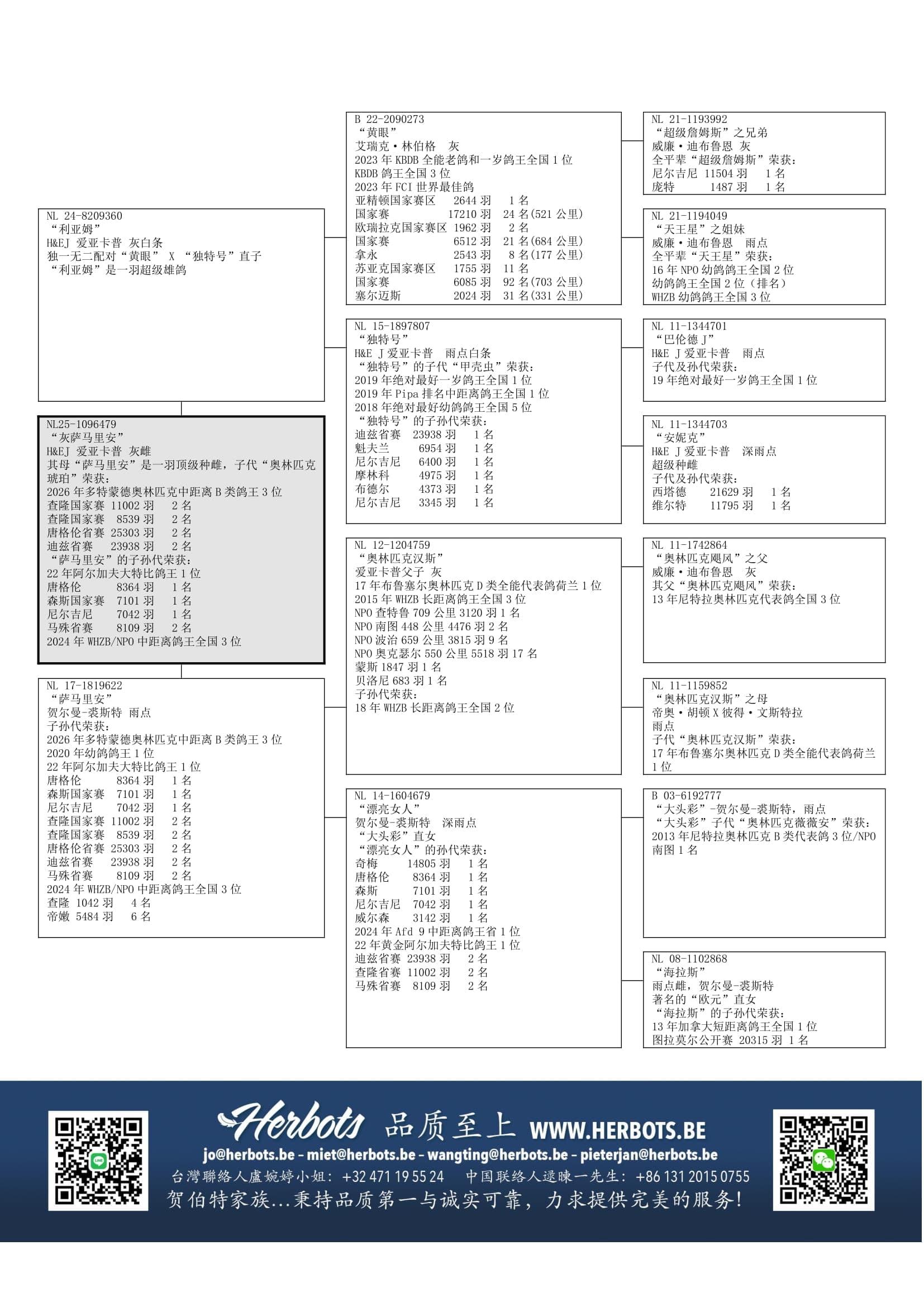 “奥林匹克汉斯” (布鲁塞尔奥林匹克全能鸽王) x “漂亮女人” (铭鸽“大头彩”直女)作出