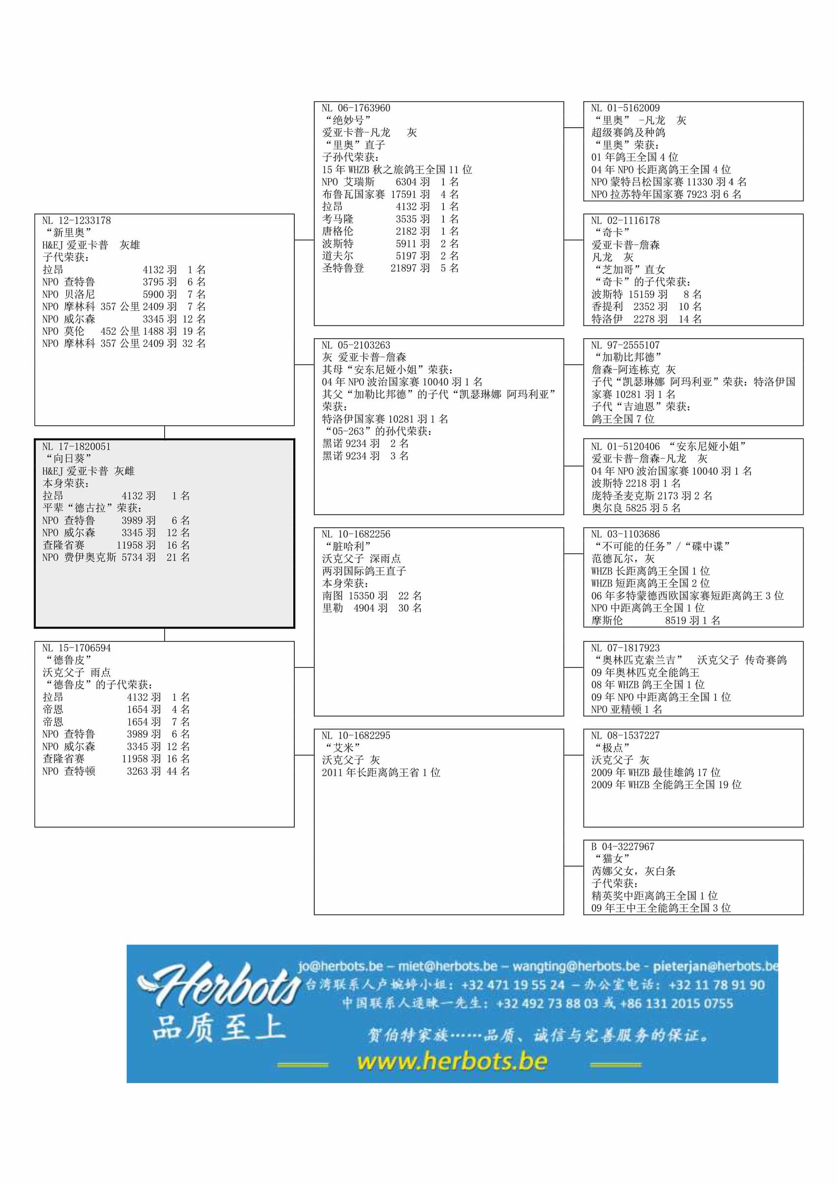 Daughter ‘New Don Leo’ X ‘Druppy’本身荣获:拉昂 4132羽 1名平辈“德古拉”荣获:NPO 查特鲁 3989羽 6名NPO 威尔森 3345羽 12名查隆省赛 11958 羽 16名NPO 费伊奥克斯 5734羽 21名NPO 查特顿 3263羽 44名雷姆斯省赛 6950羽 61名