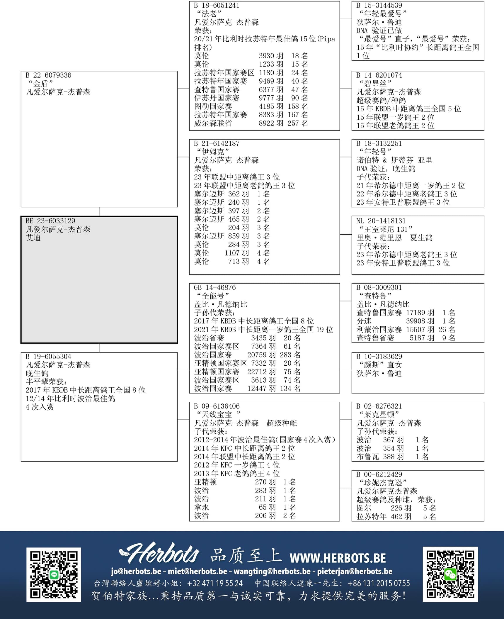 荣获: 20/21年比利时拉苏特年最佳鸽15位
