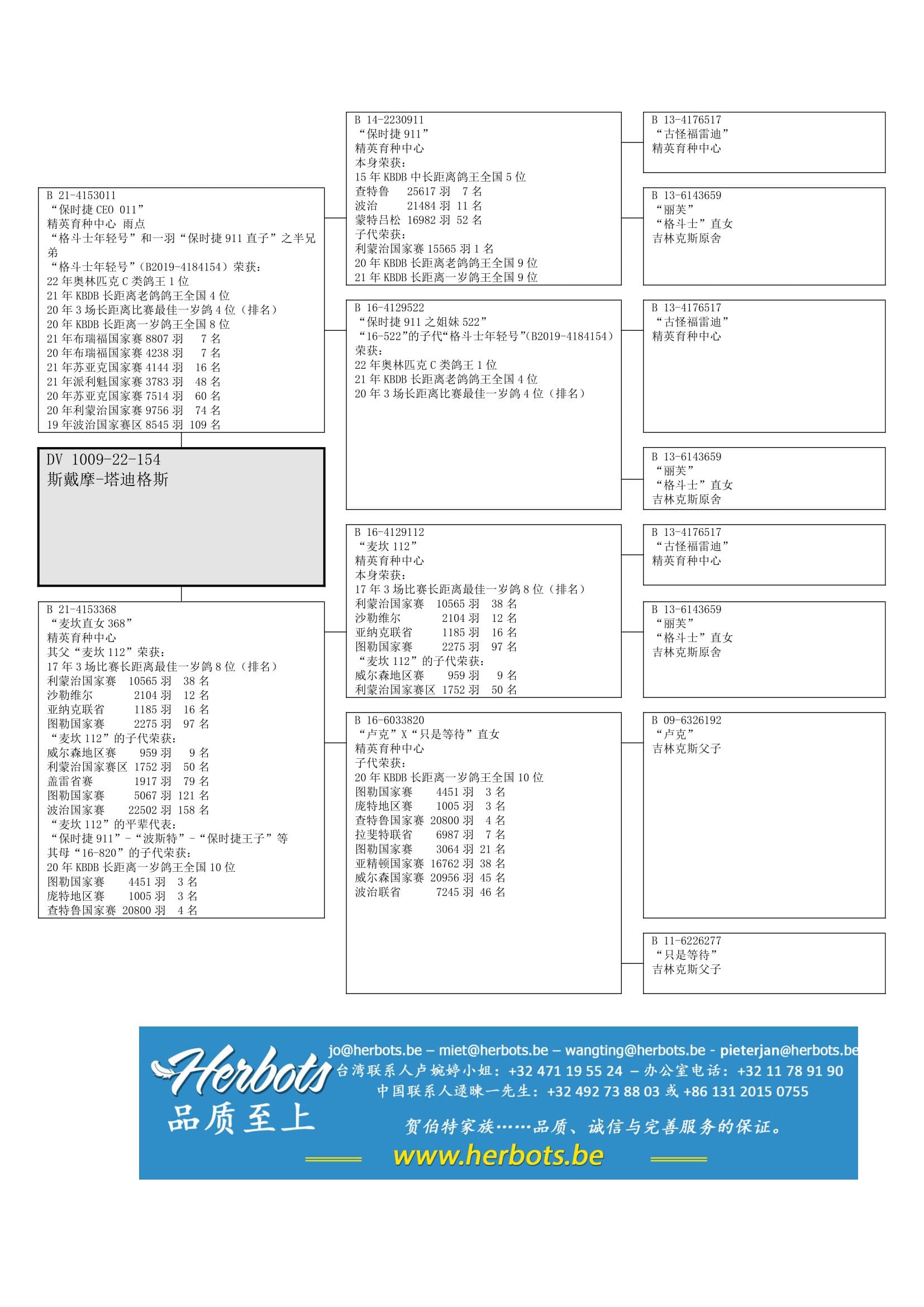 2022年奥林匹克C类鸽王 – 2021年KBDB长距离老鸽鸽王全国4位 – 2021年KBDB长距离一岁鸽王全国8位