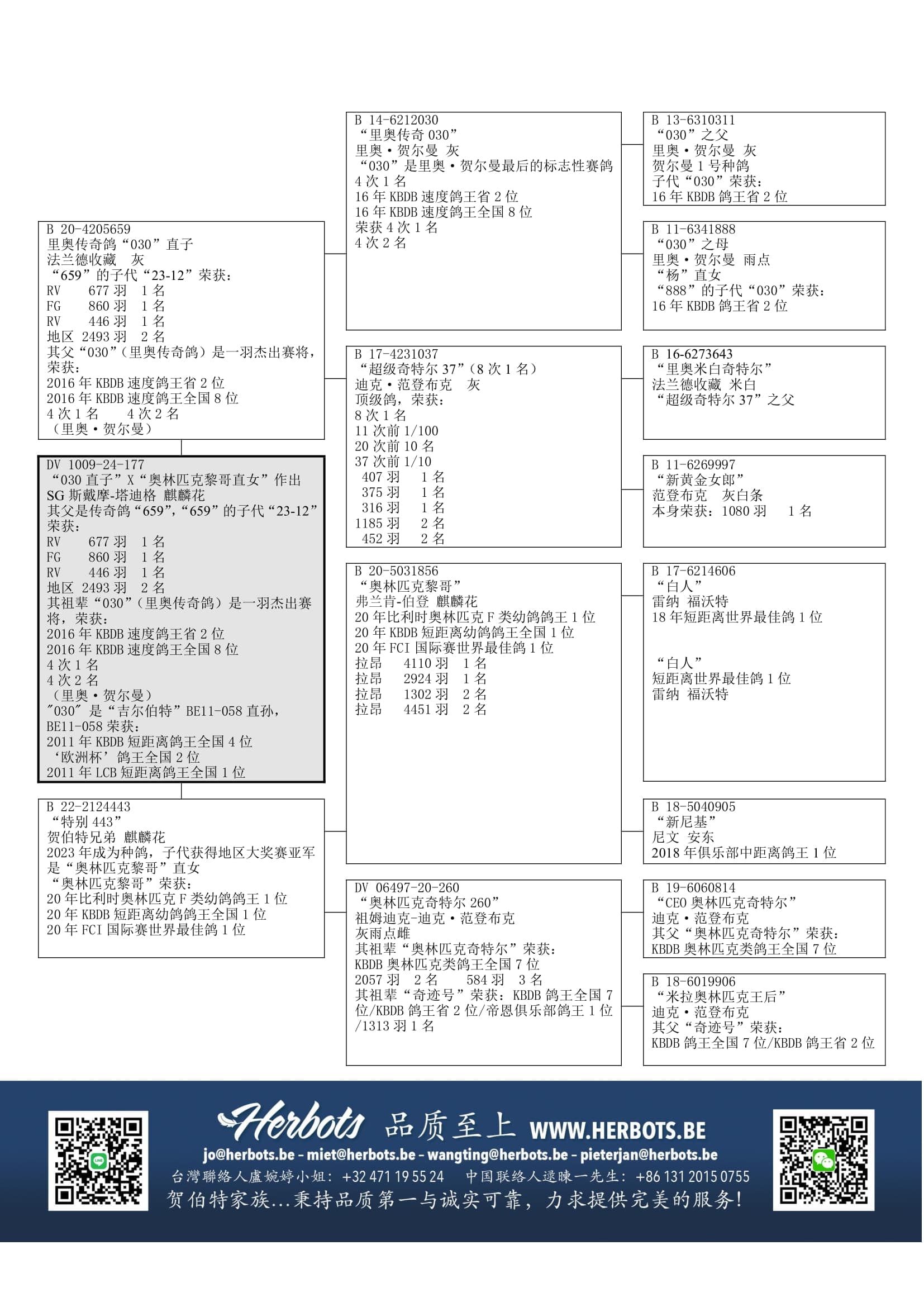 “奥林匹克黎哥”的后代在全球各鸽舍各种比赛中翔绩优异