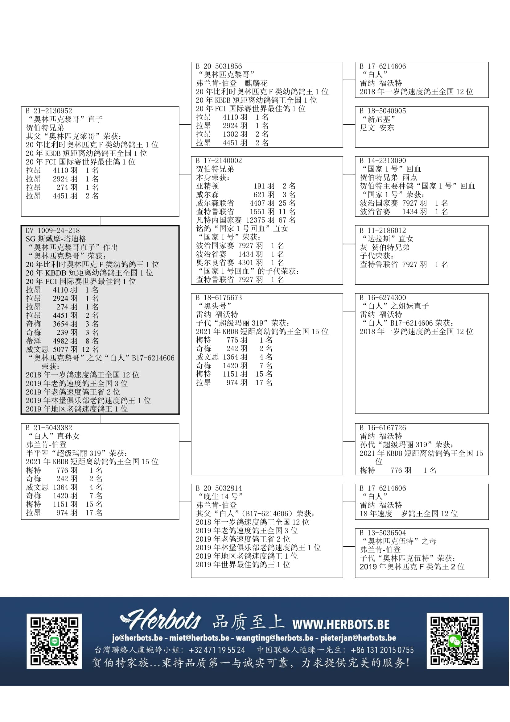 “奥林匹克黎哥”的后代在全球各鸽舍各种比赛中翔绩优异