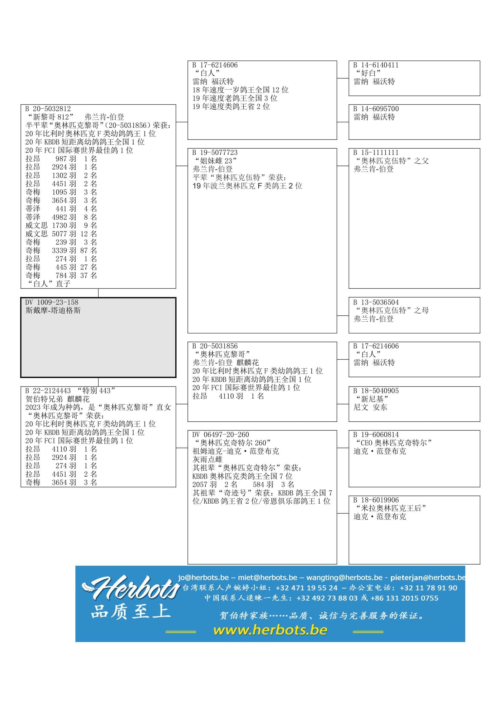 “白人” x “姐妹雌 23” (波兰奥林匹克F类鸽王“奥林匹克伍特”之全姐妹)作出