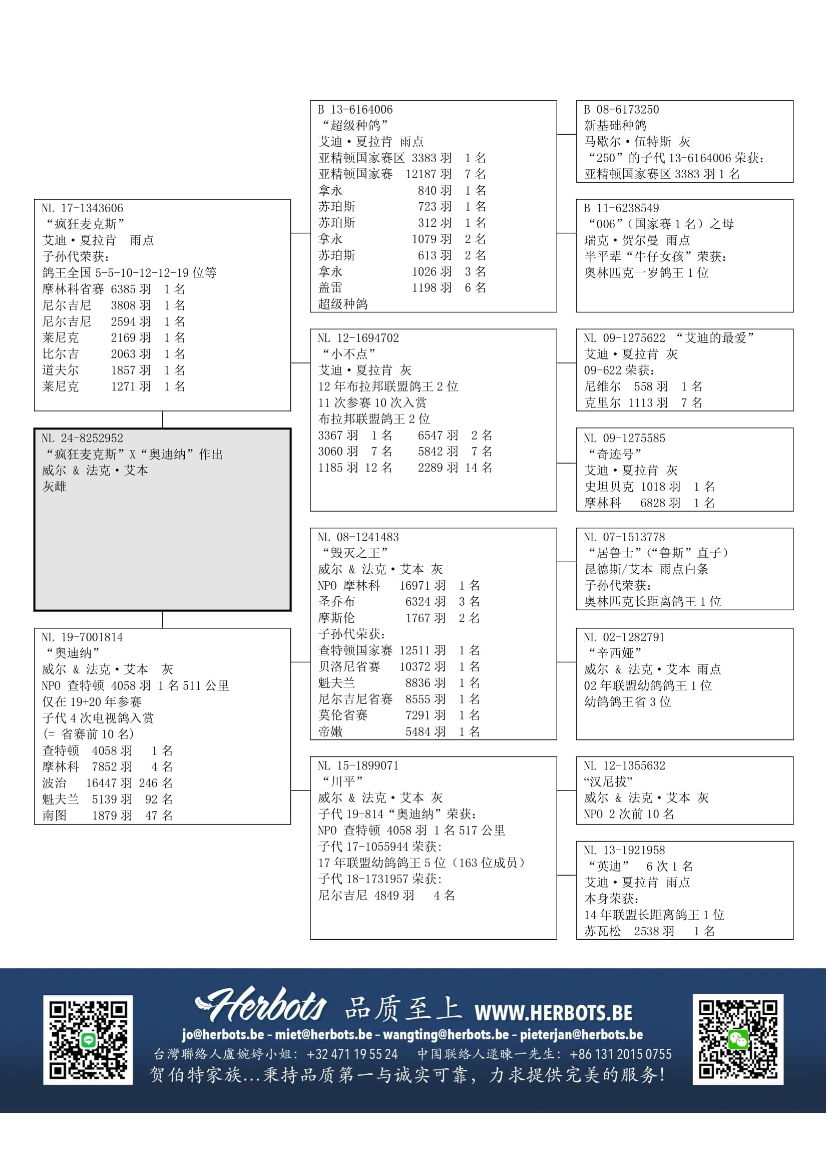 “疯狂麦克斯” 作出下列两代顶级鸽: