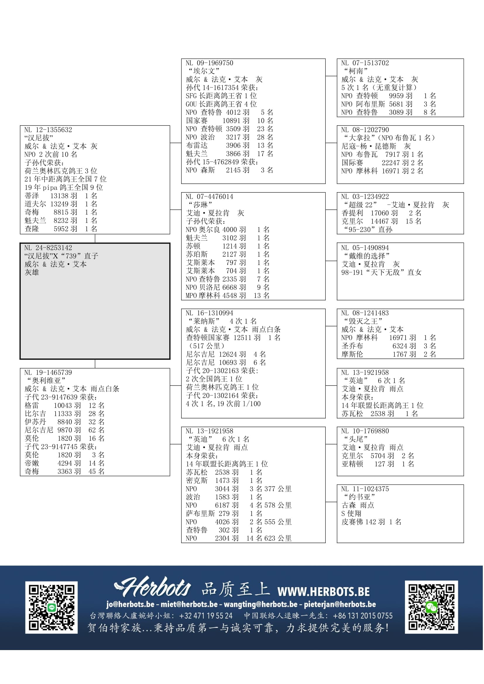 披萨” (2 次全国鸽王1位以及奥林匹克代表鸽) 和“大流行” (大型比赛4 次1名)