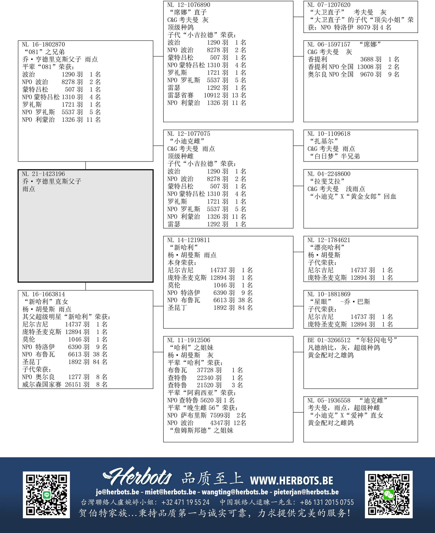 荣获: 尼尔吉尼 14,737羽1名 – 庞特 12,894羽1名 -