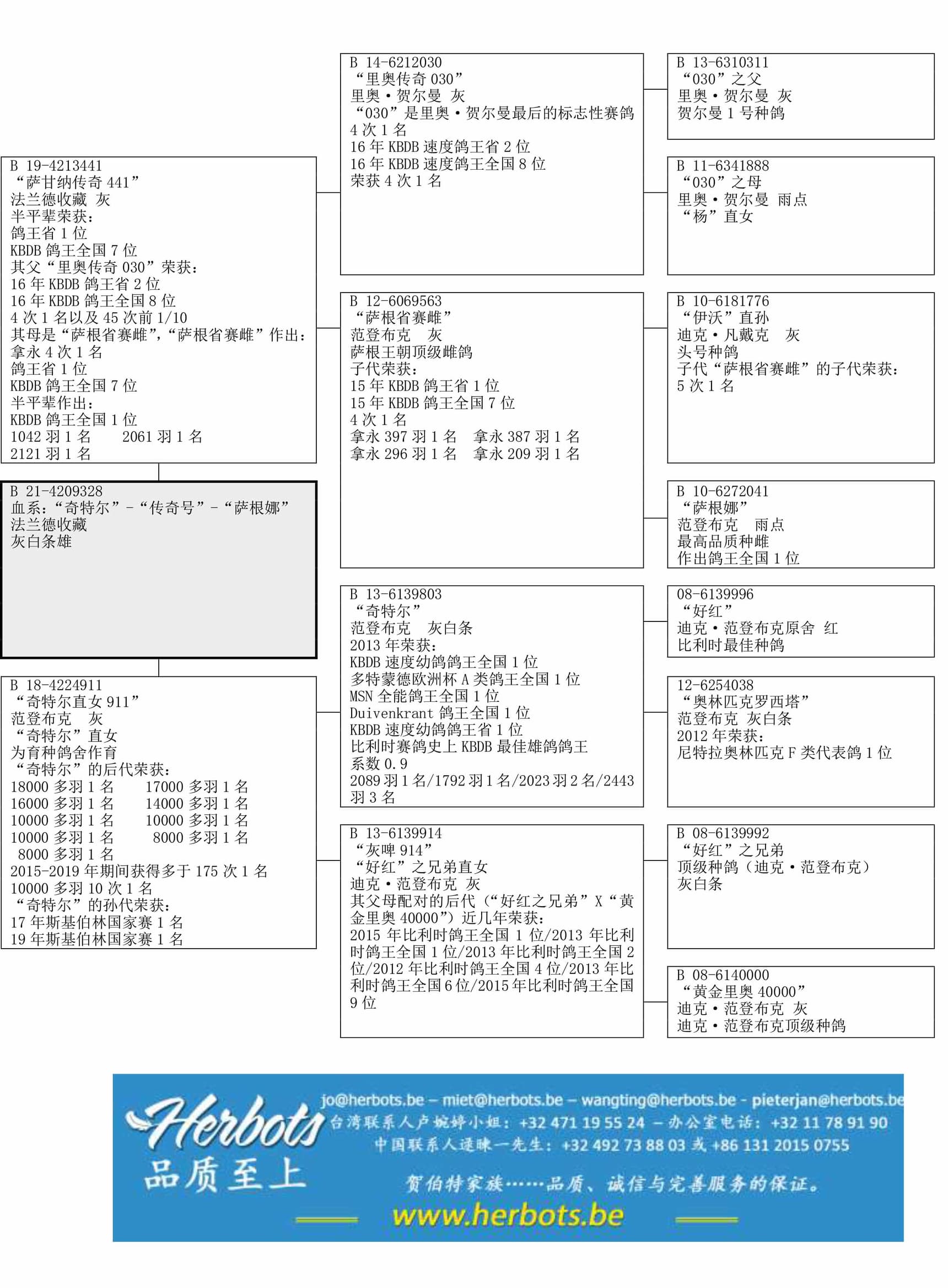 “好红之兄弟” x “黄金里奥 40000”直女. 这一配对的后代荣获: 15年KBDB鸽王全国1位 – 13年KBDB鸽王全国1位 – 13年KBDB鸽王全国2位 – 12年KBDB鸽王全国4位 – 13年KBDB鸽王全国6位 – 15年KBDB鸽王全国9位
