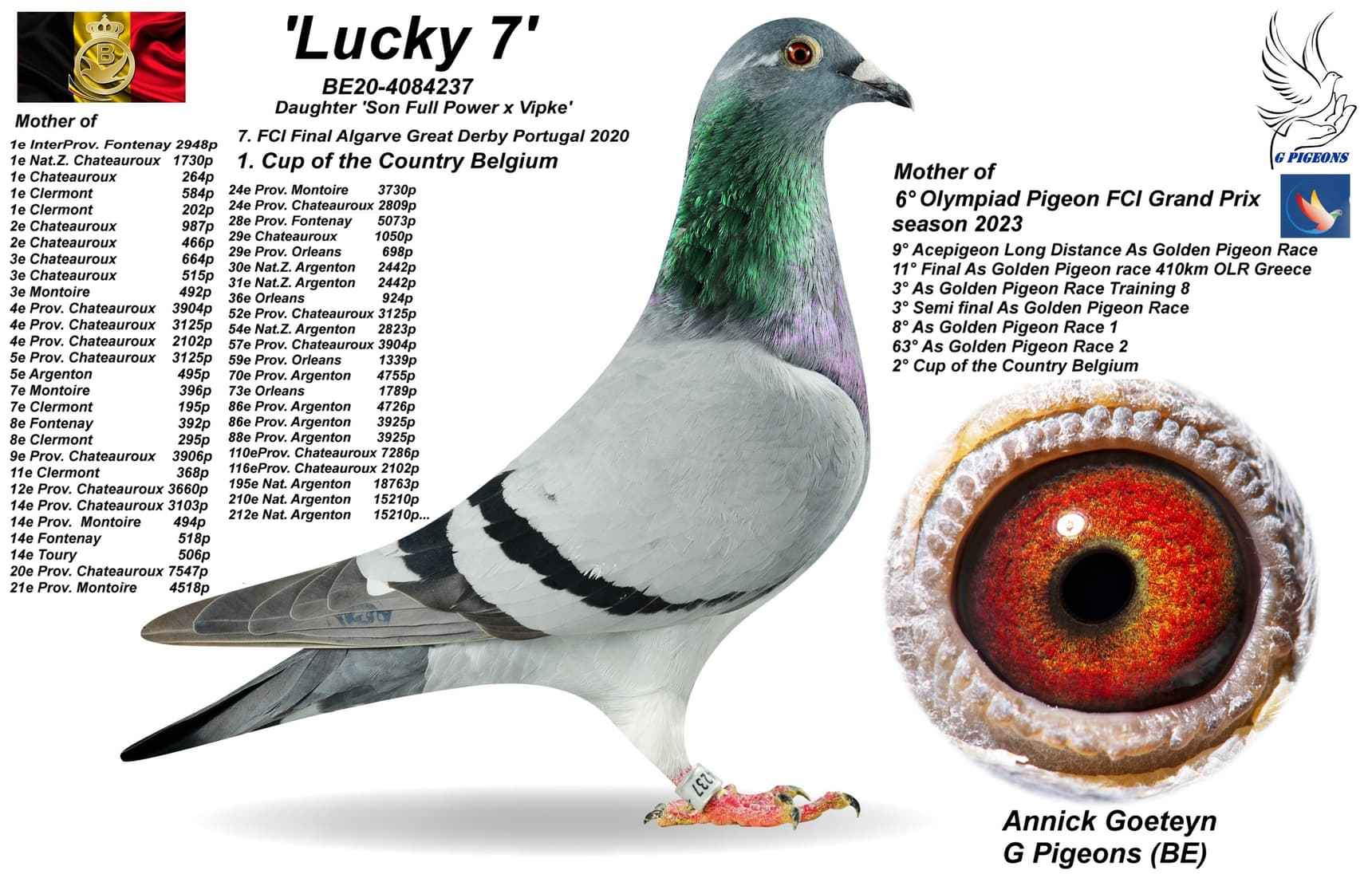 2,948羽1名 - 查特鲁省赛3,904羽4名 –