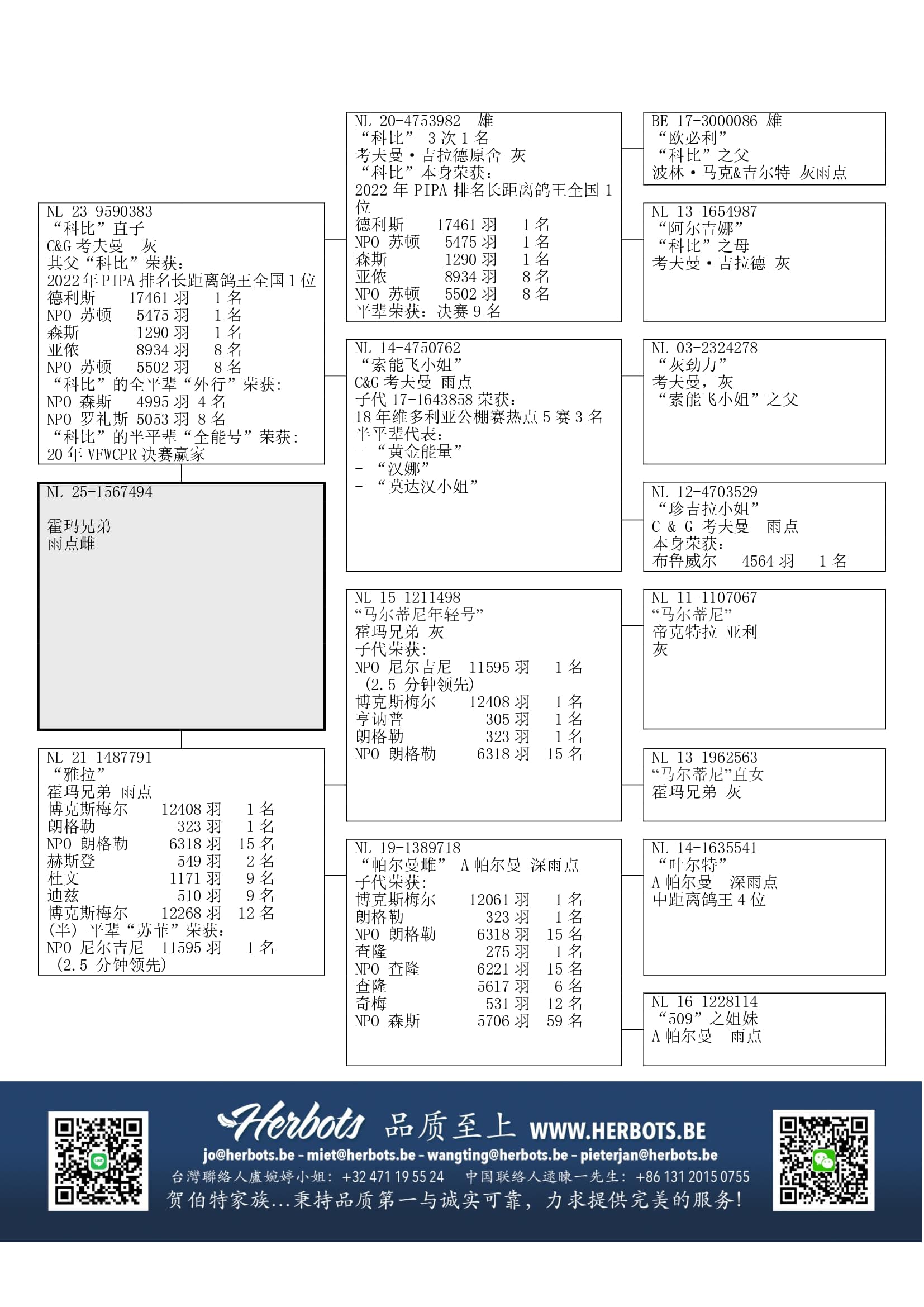 其祖辈代表: “叶尔特” (阿诺德 帕尔曼 -中距离鸽王4位)