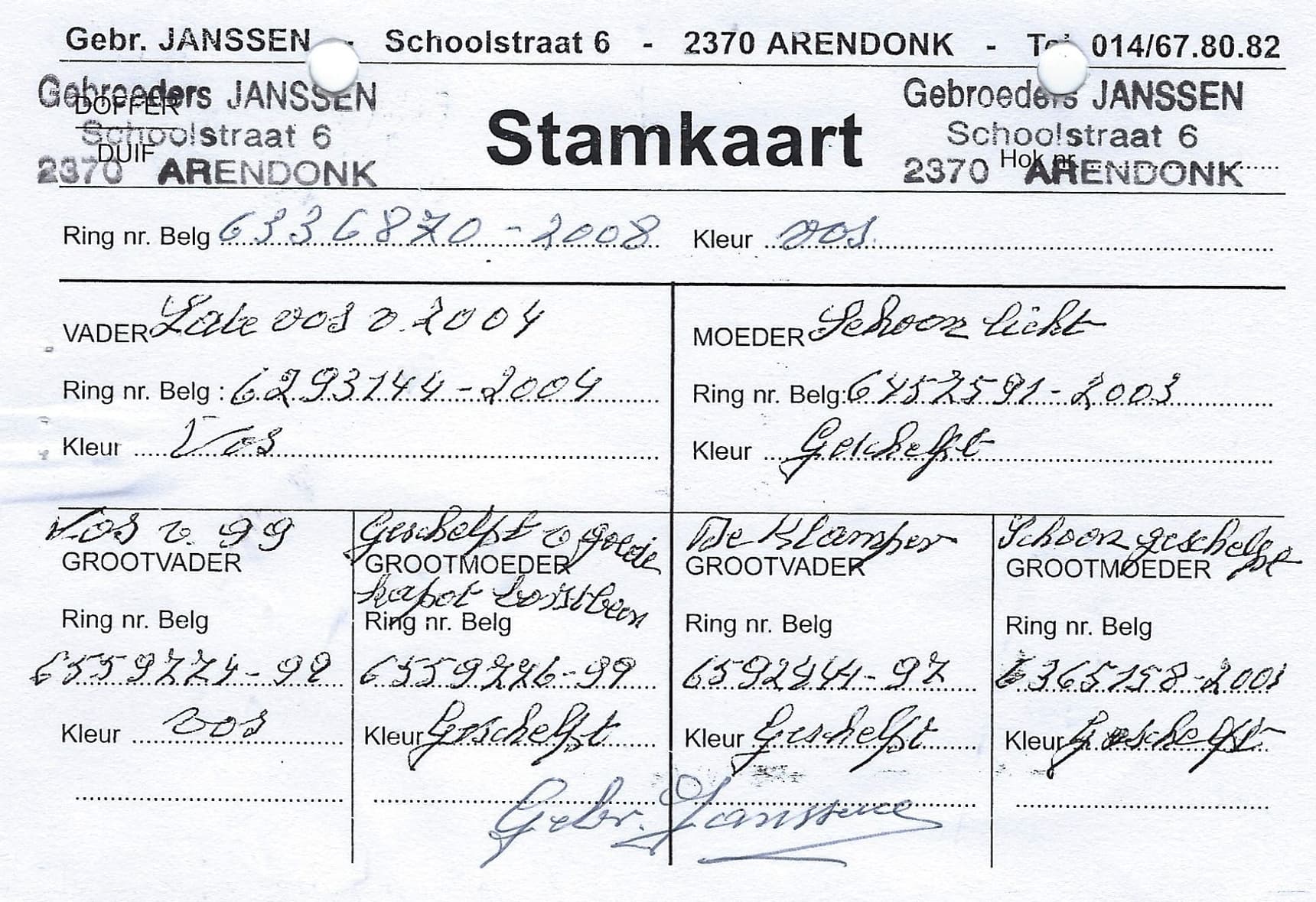 作育者: 100% Gebr. Janssen - Arendonk 纯詹森兄弟