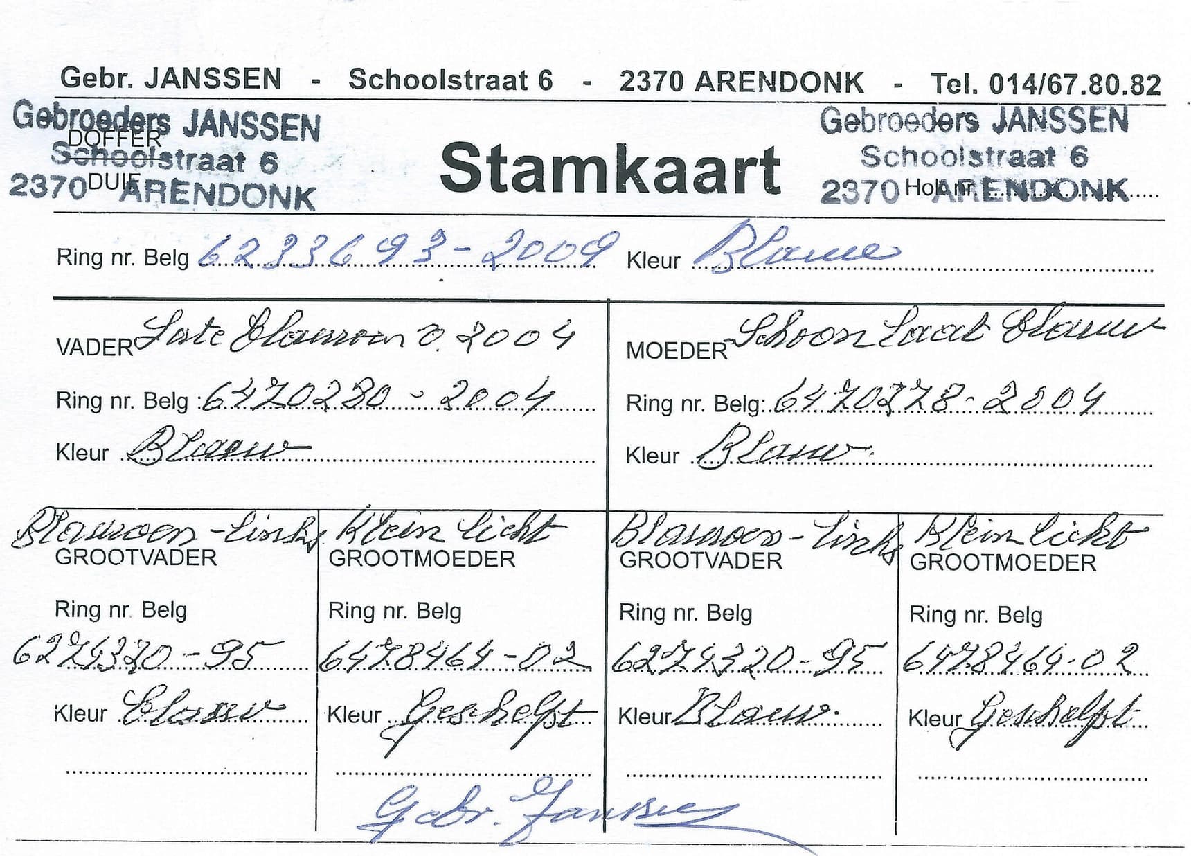 作育者: 100% Gebr. Janssen - Arendonk 纯詹森兄弟
