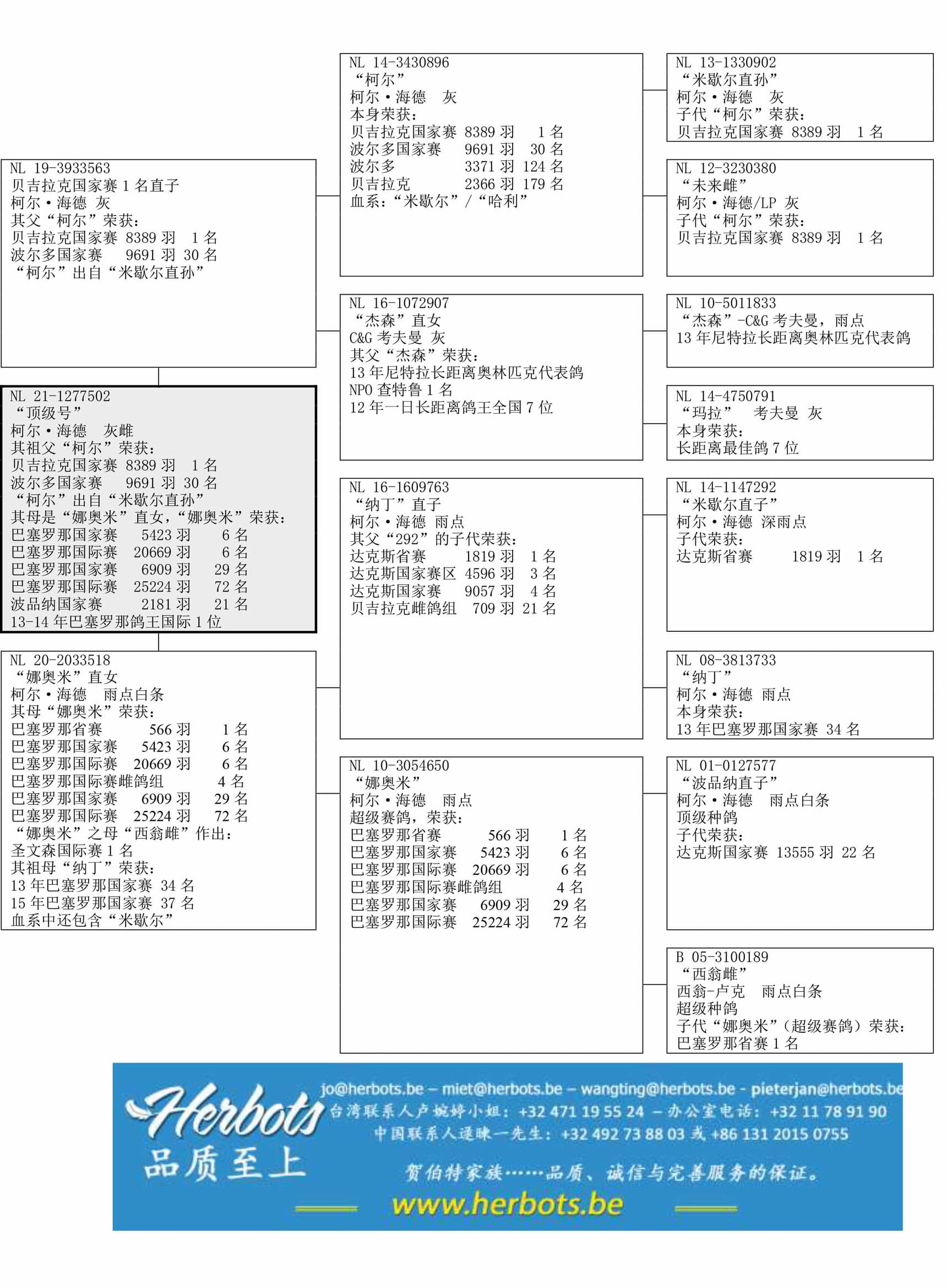 “纳丁直子” (半平辈荣获:达克斯省赛 1,819羽1名 – 国家赛 4,596羽3名 – 国家赛 9,057羽4名 - “纳丁” 荣获:巴塞罗那国家赛34名) x “娜奥米” (是2个赛季巴塞罗那最佳鸽 . 荣获 巴塞罗那国际赛6名/国家赛29名.) 作出