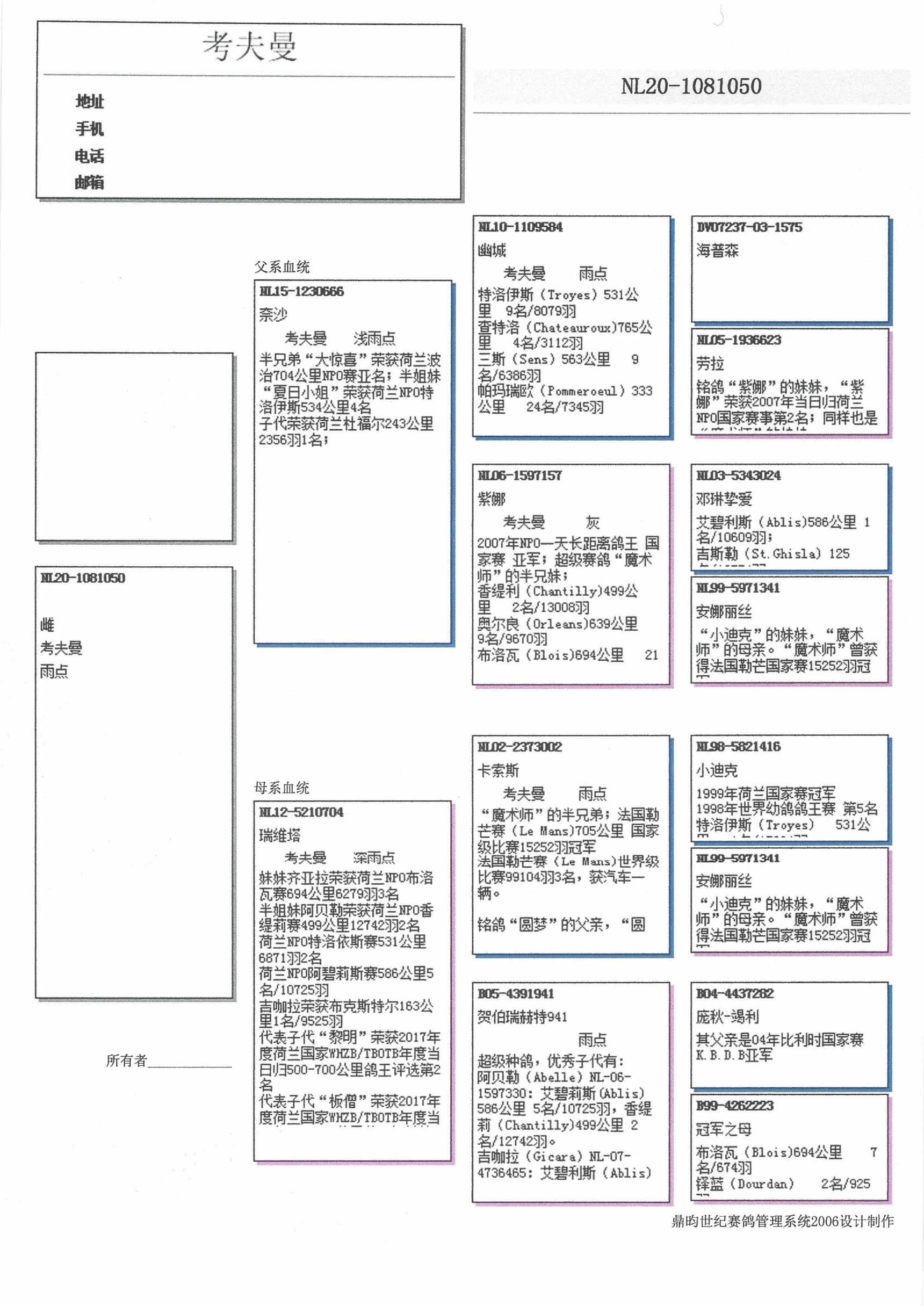 带DNA检验证书半姐妹,出自同一母亲:“本森””本森”荣获2017WHZB/TBOTB荷兰当日归国家赛第4名“李明”2017年荣获荷兰WHZB/TBOTB当日归国家赛鸽王2名1st Duffel 2,356b. 杜福尔赛2356羽冠军半姐妹,出自同一父亲