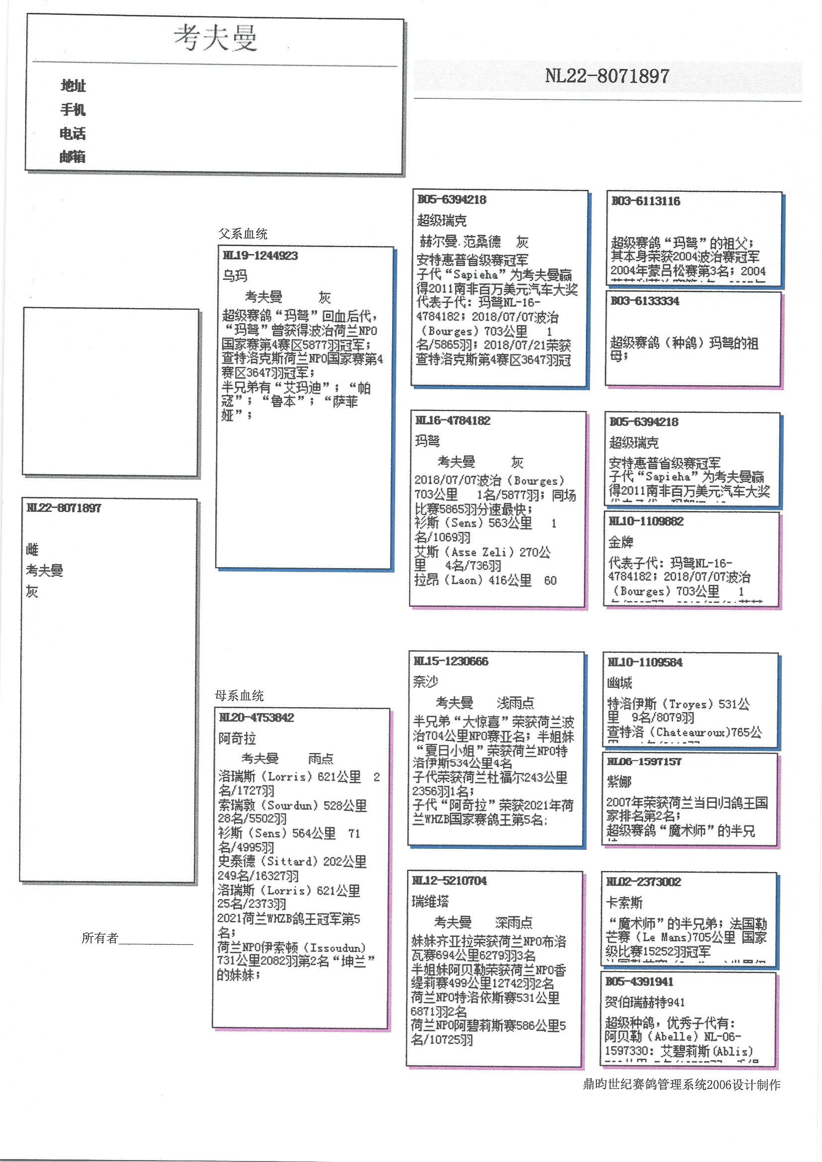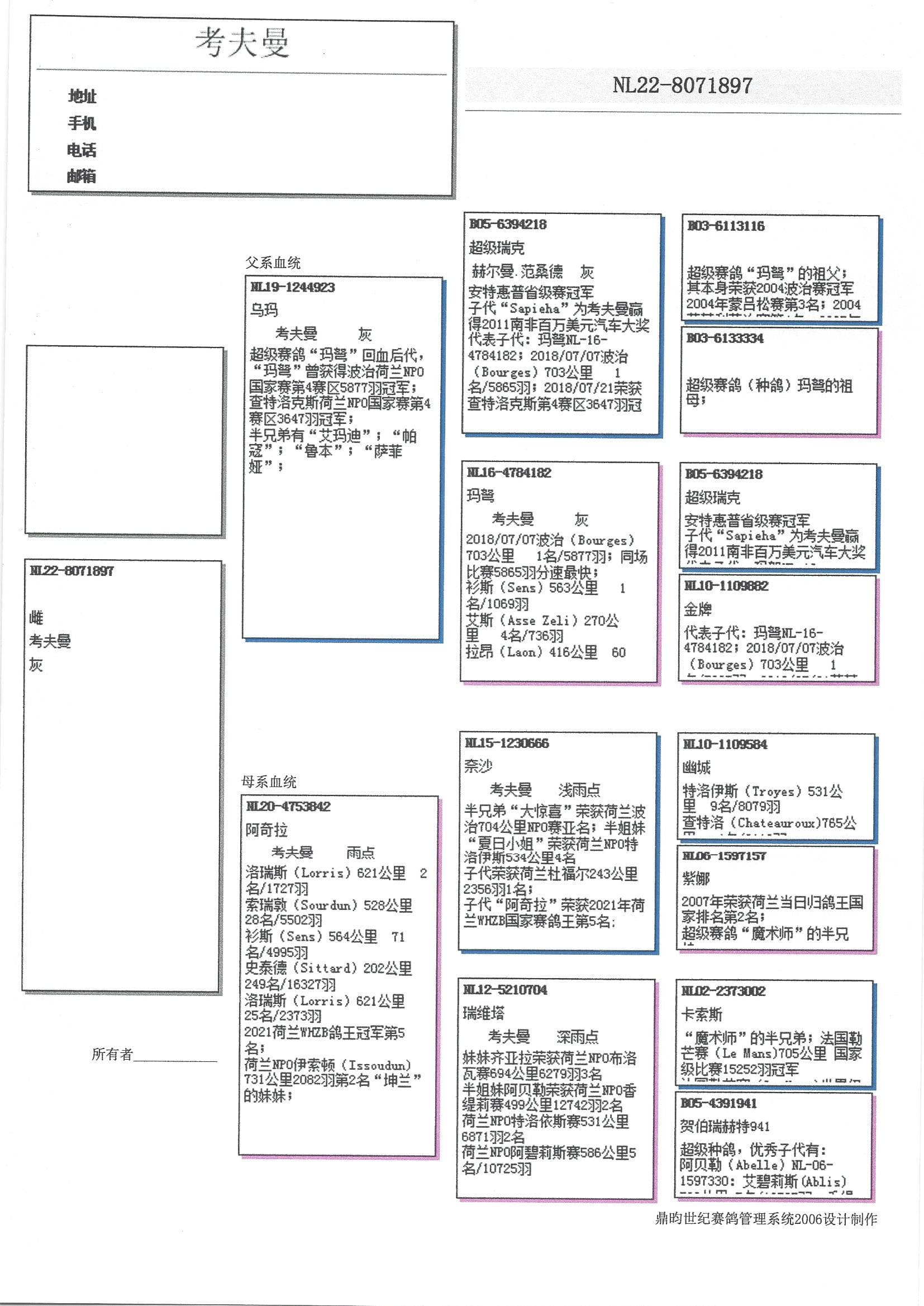 “艾玛迪”: WHZB/王中王长距离鸽王全国4位
