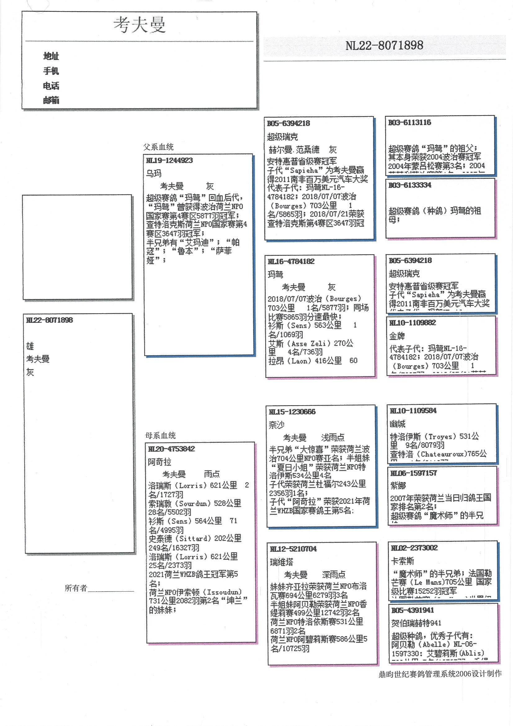 “艾玛迪”: WHZB/王中王长距离鸽王全国4位