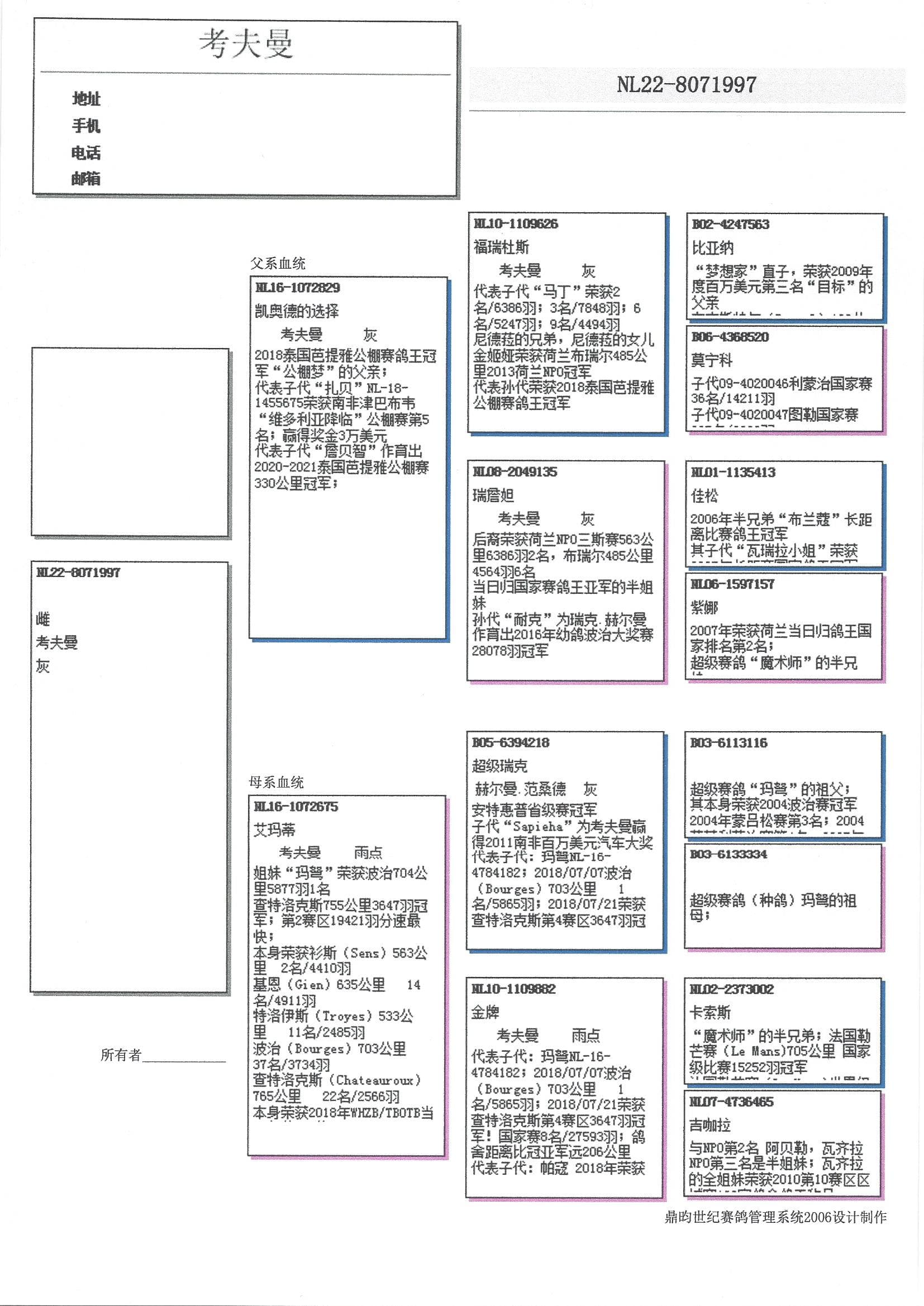 “玛弩”: NPO 查特鲁国家赛4区 3,647羽1名 - 19,192羽分速最高- NPO 波治国家赛4区 5,877羽1名 – 森斯 1,069羽1名
