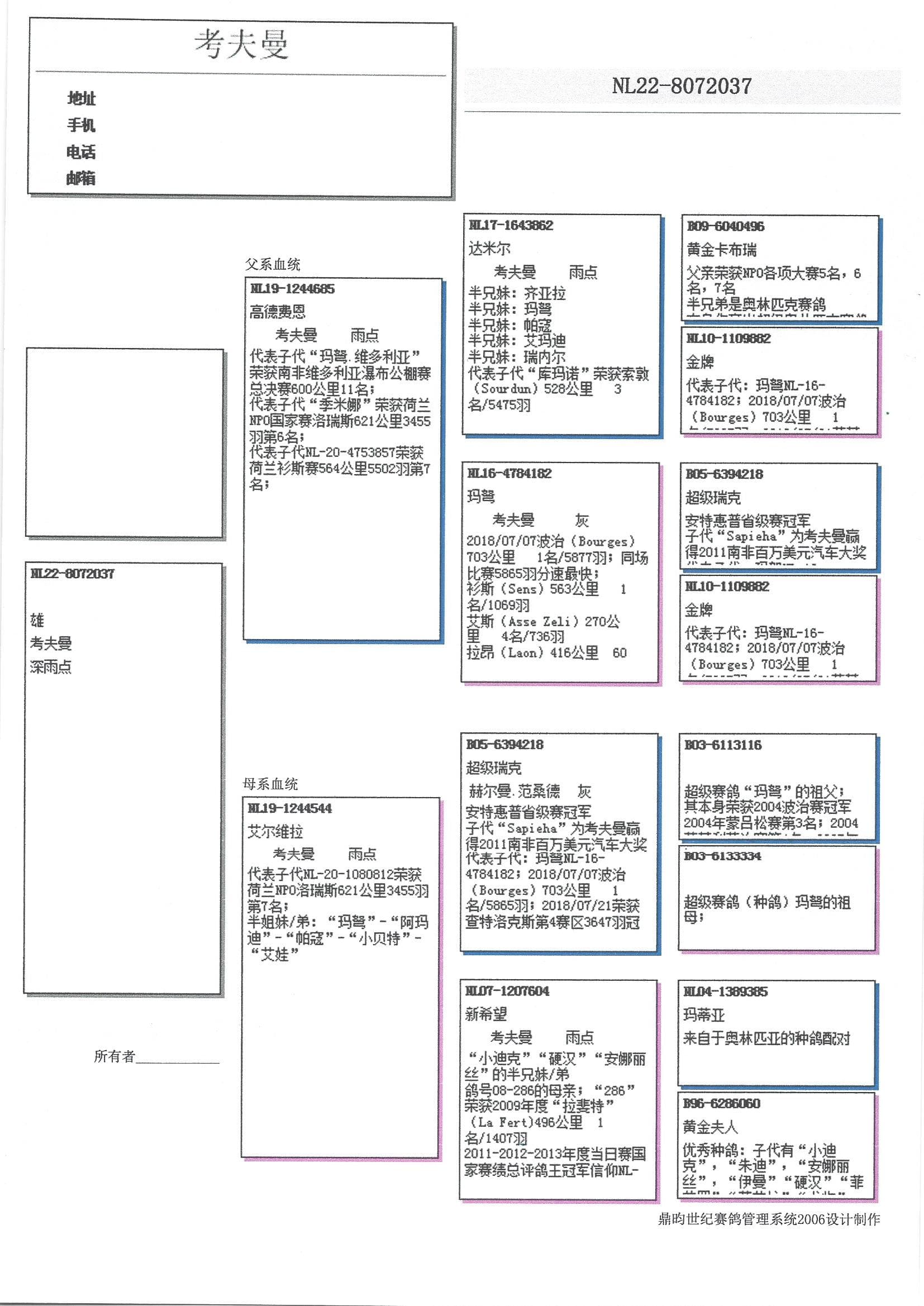 “艾玛迪”: WHZB/王中王长距离鸽王全国4位
