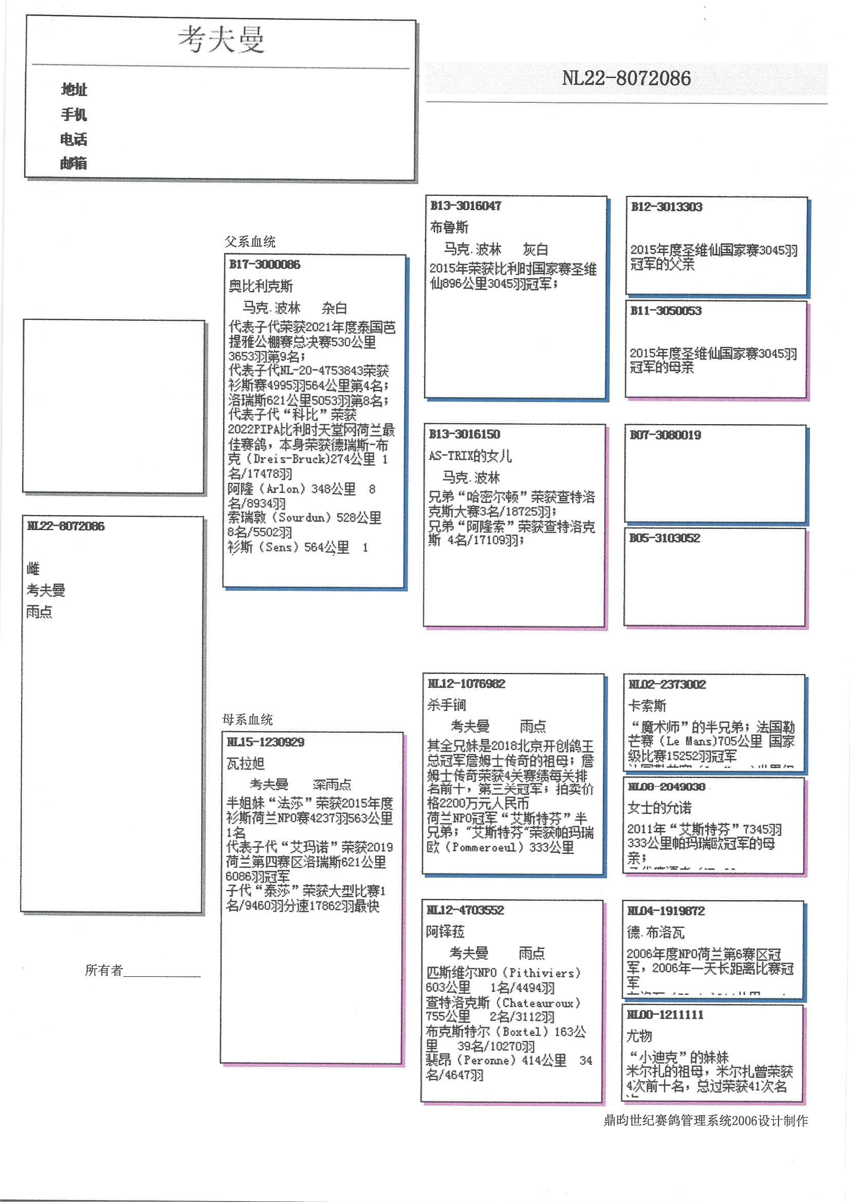 子代“阿玛诺”荣获:NPO 罗礼斯 IV 6086羽1名